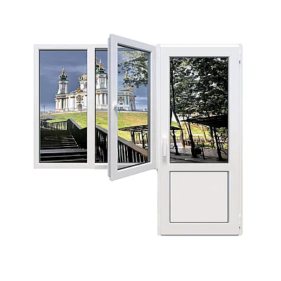 Балконный блок Epsilon Basic с двухстворчатым окном и поворотно-откидной створкой 1900 x 2000 мм