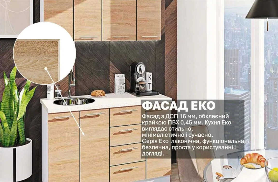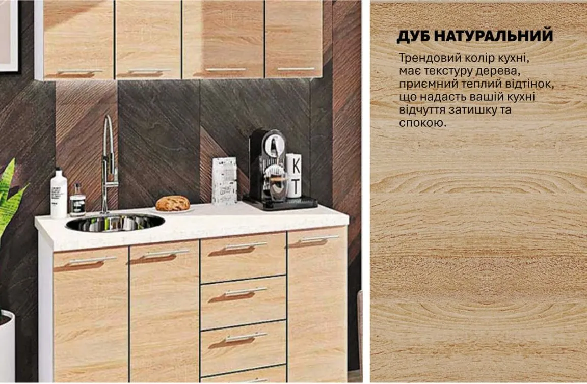 Готовая кухня Комфорт Эко 1,3 м прямая Дуб натуральный