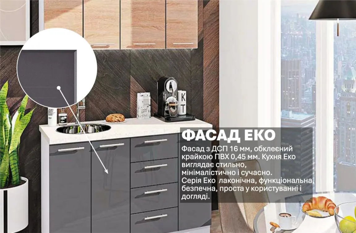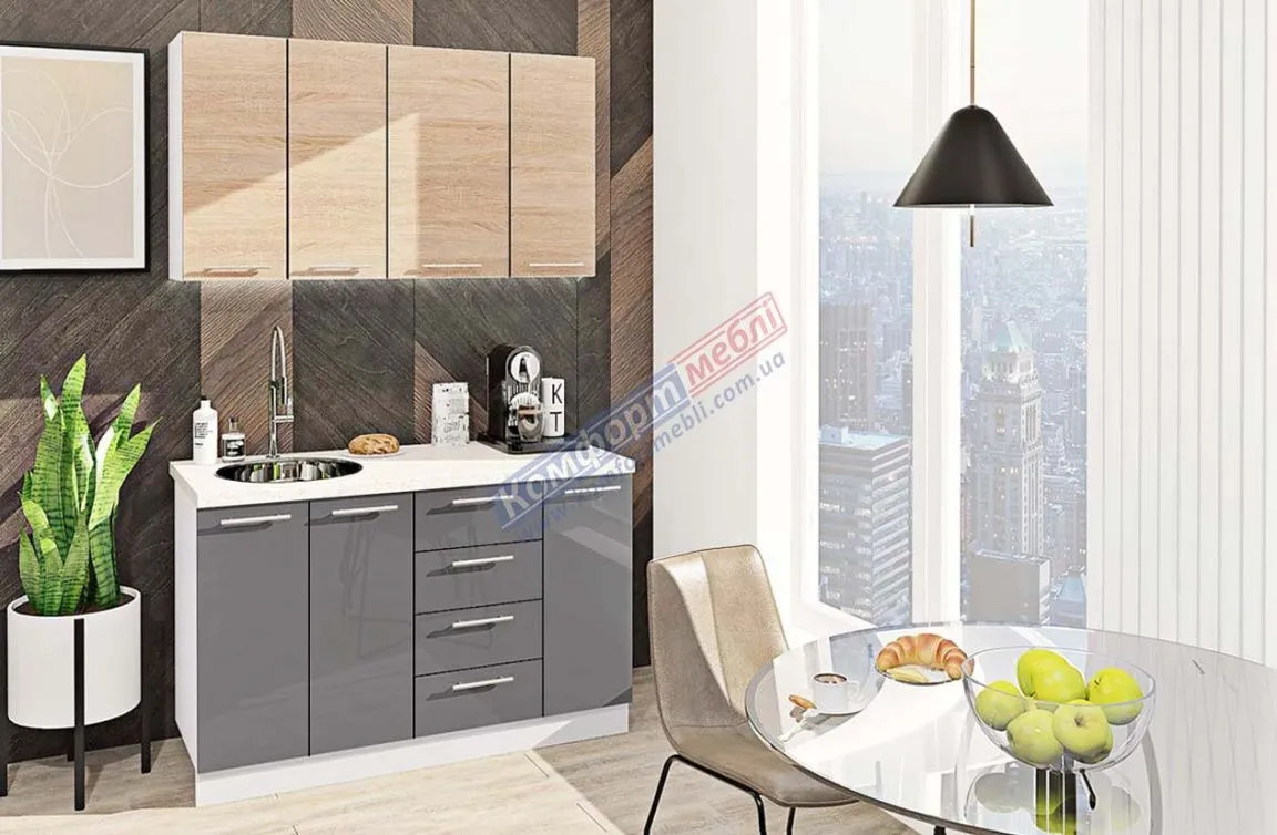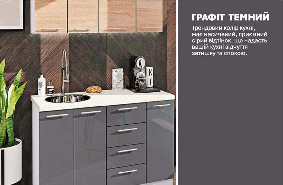 Готовая кухня Комфорт Эко 1,3 метра прямая Графит, Дуб сонома