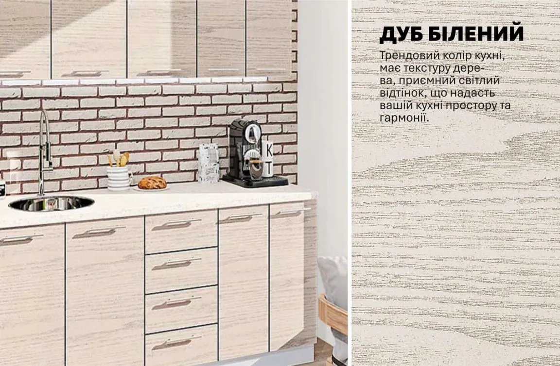 Готовая кухня Комфорт Эко 1,8 метра прямая Дуб беленый