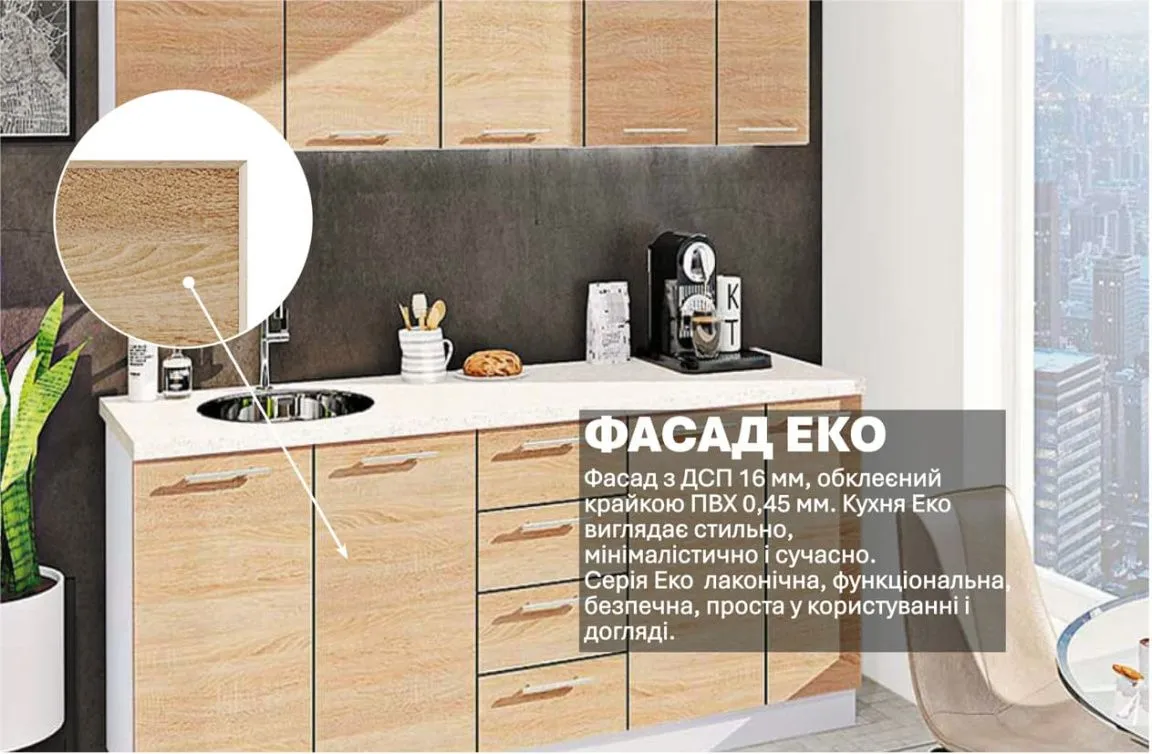 Готовая кухня Комфорт Эко 1.9 метра прямая Дуб сонома