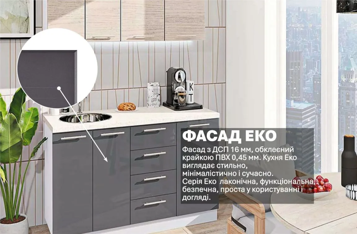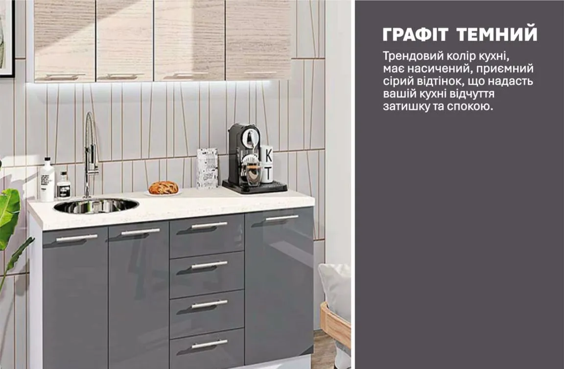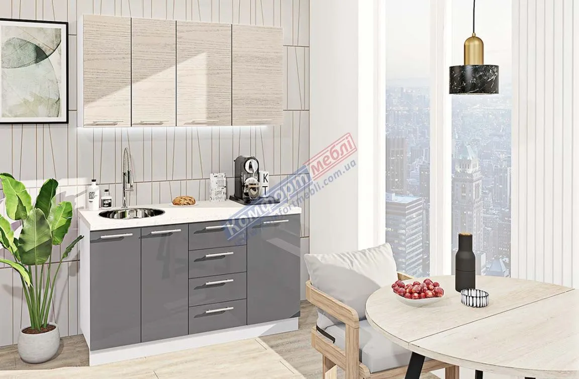 Готовая кухня Комфорт Эко 1400 мм прямая Графит, Дуб беленый