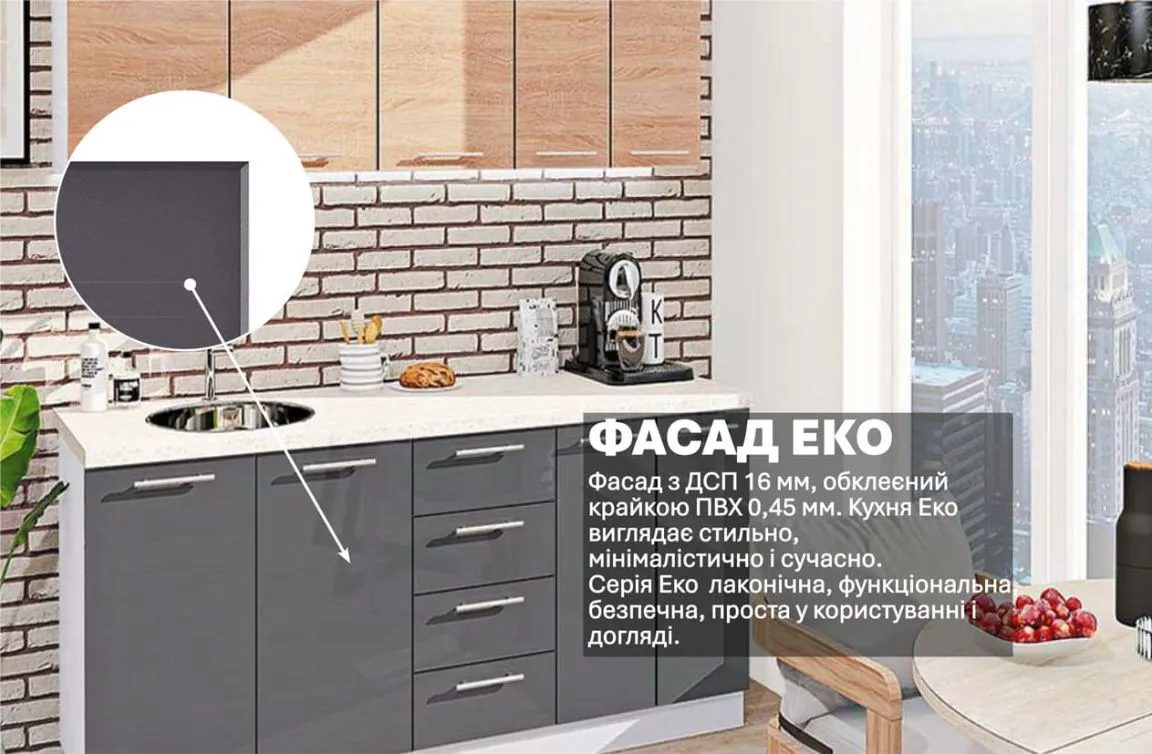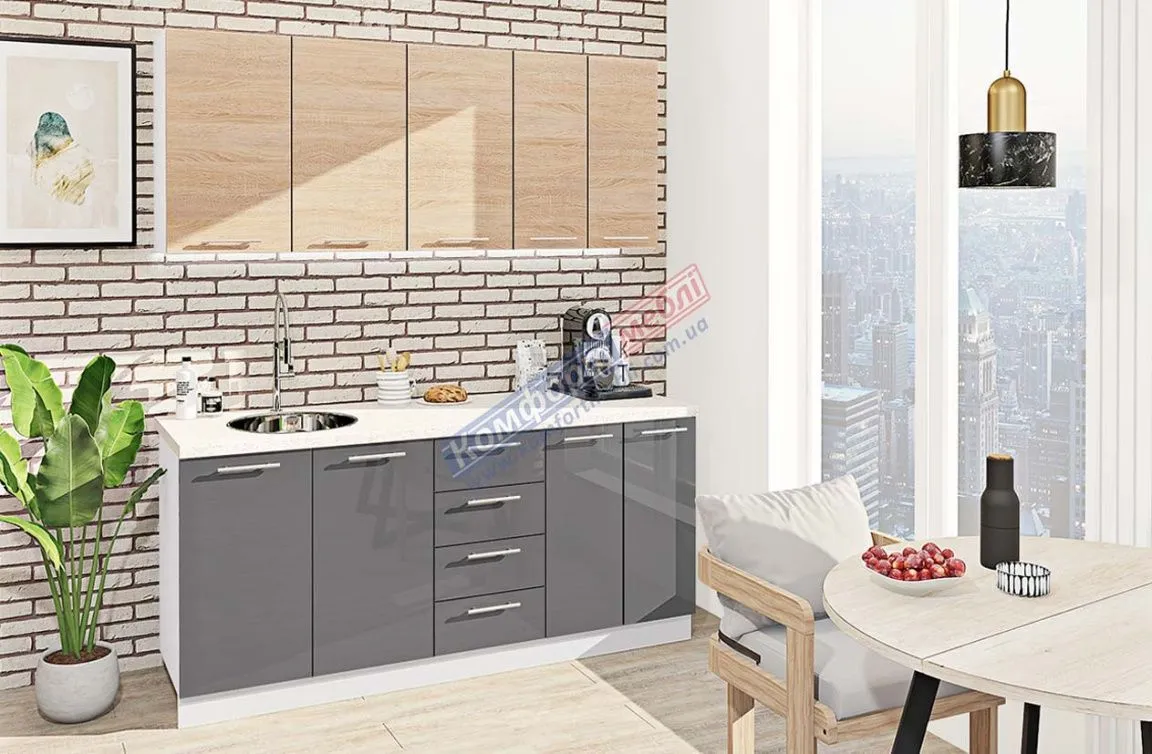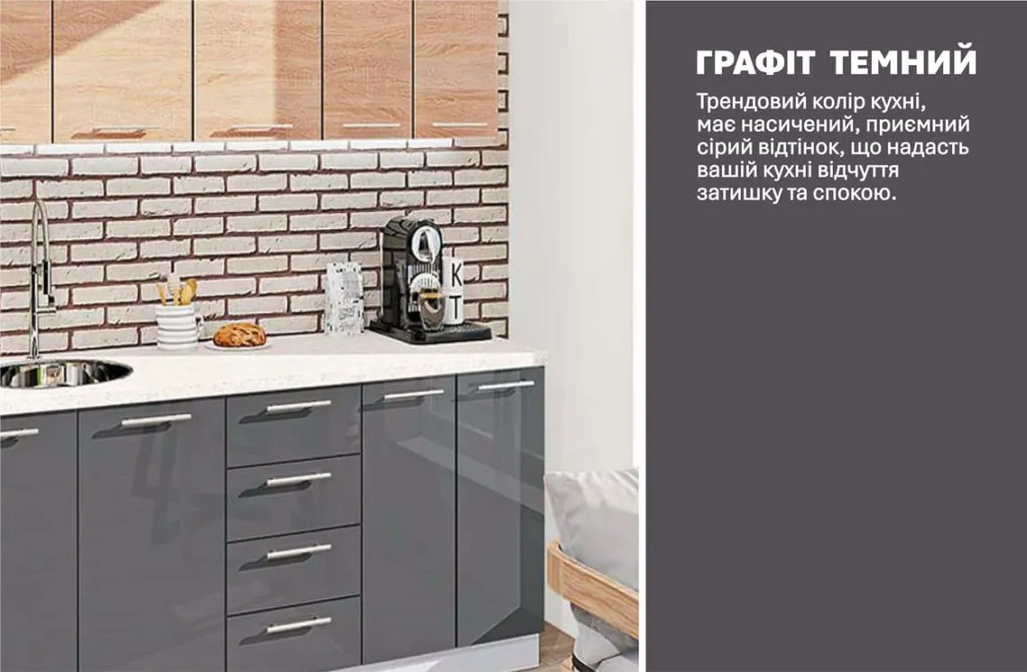 Готовая кухня Комфорт Эко 180 см прямая Графит, Дуб натуральный