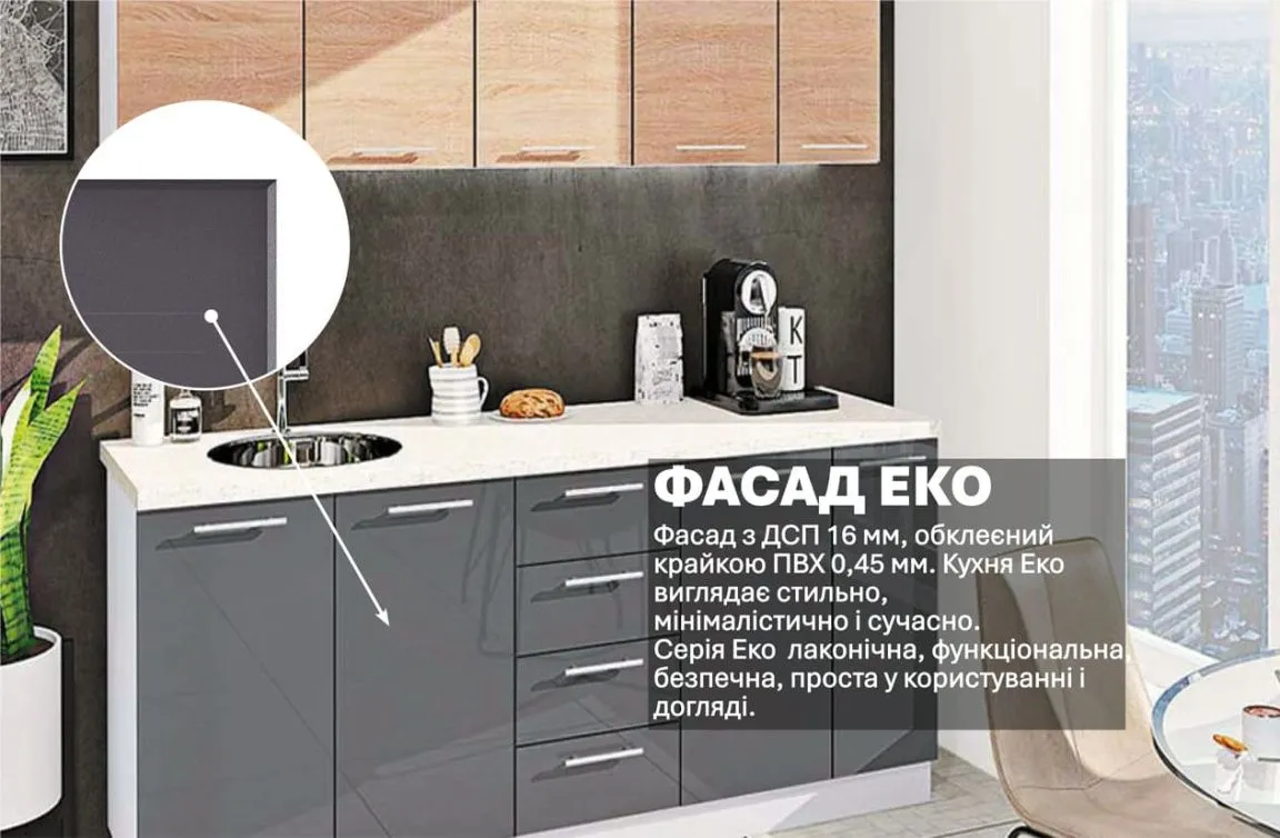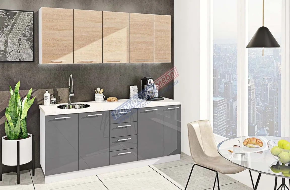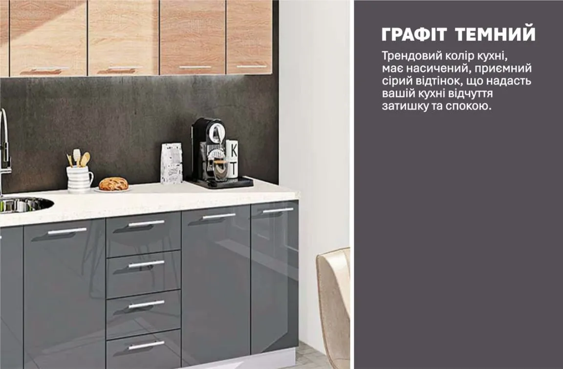 Готовая кухня Комфорт Эко 190 см прямая Графит, Дуб сонома