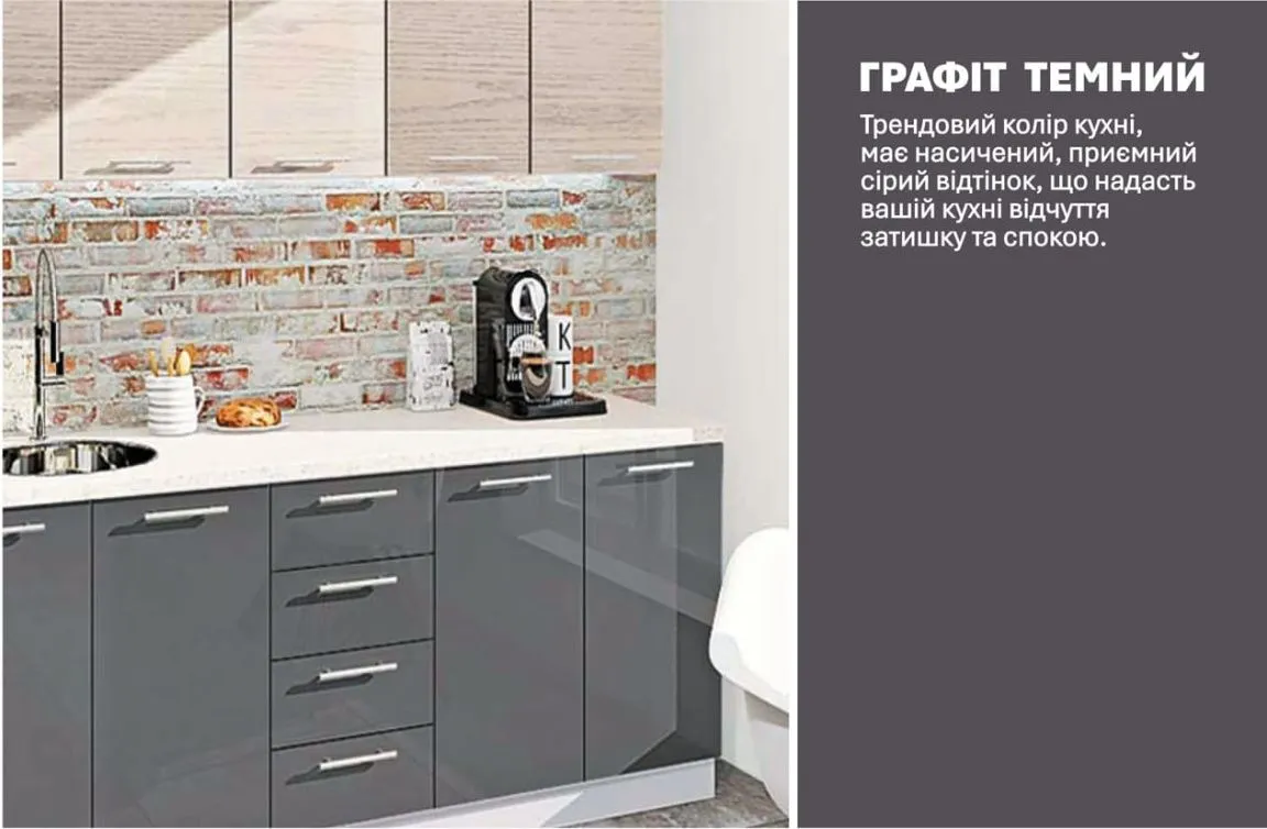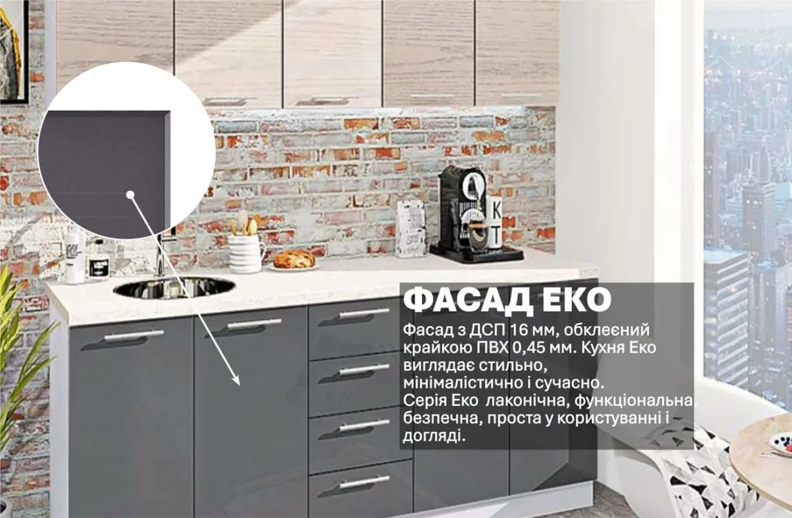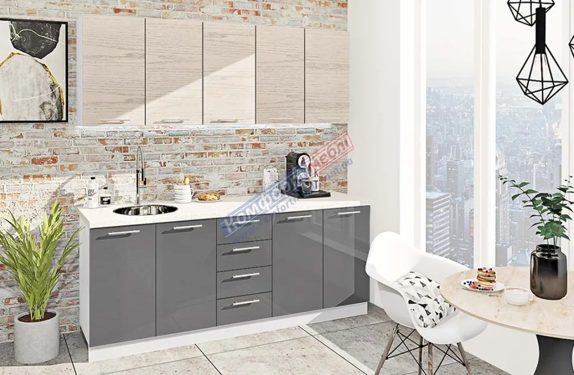 Готовая кухня Комфорт Эко 2.0 метра прямая Темно-серый, Дуб беленый