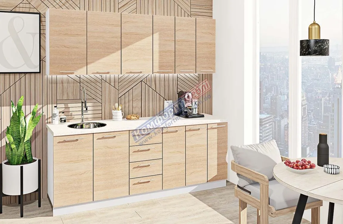 Готовая кухня Комфорт Эко 2,1 м прямая Дуб натуральный
