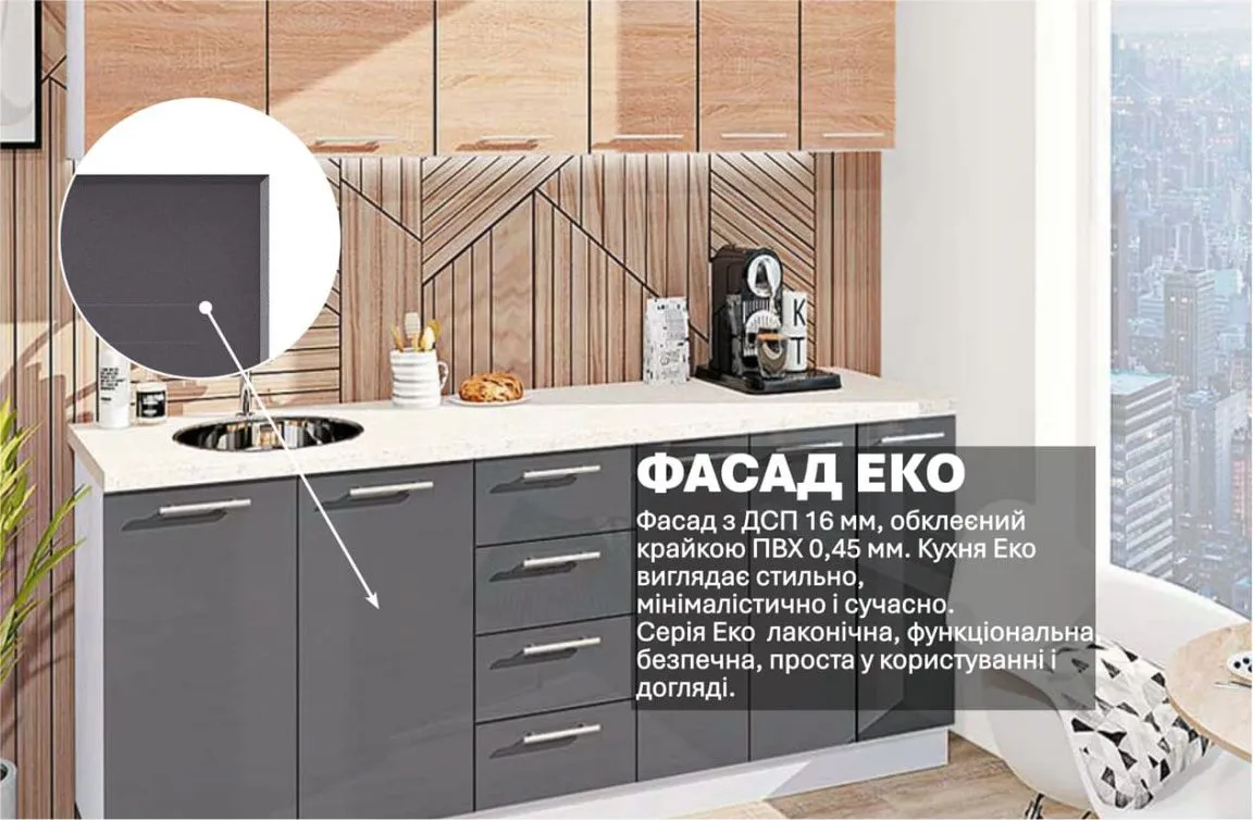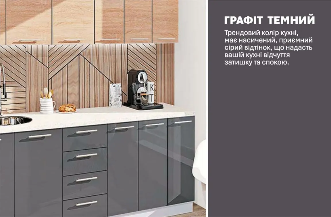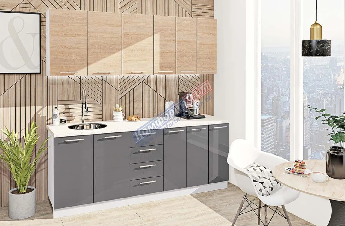 Готовая кухня Комфорт Эко 2,1 метра прямая Графит (антрацит), Дуб сонома