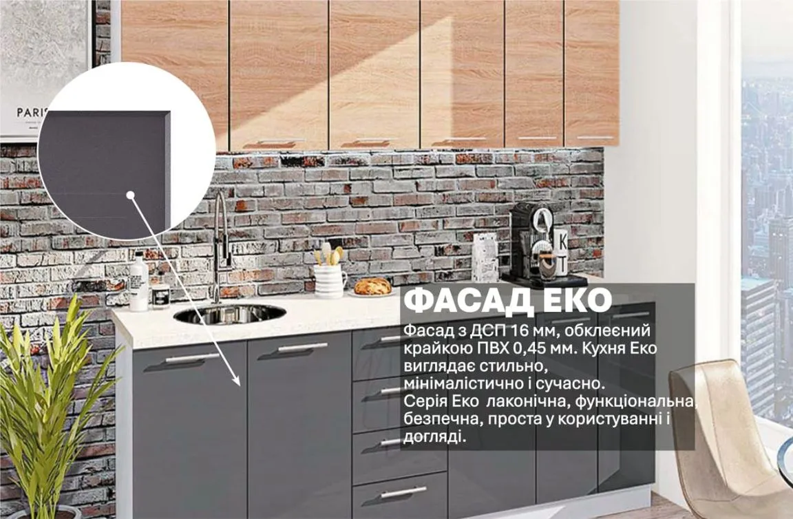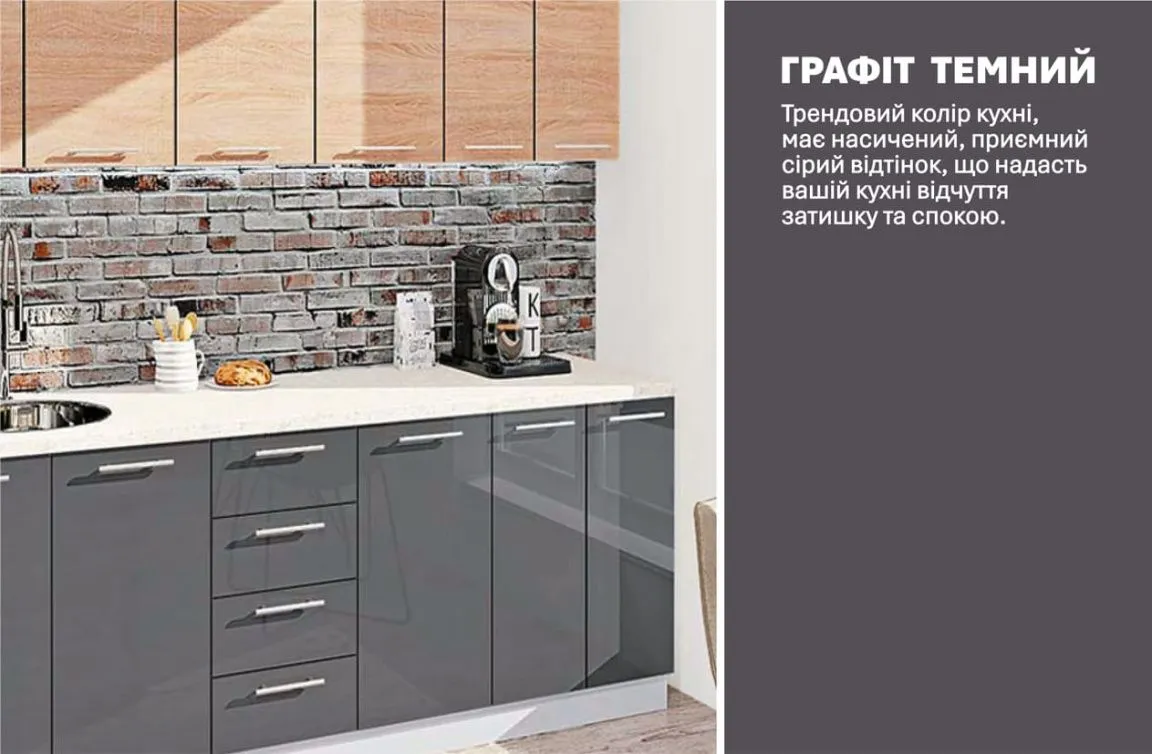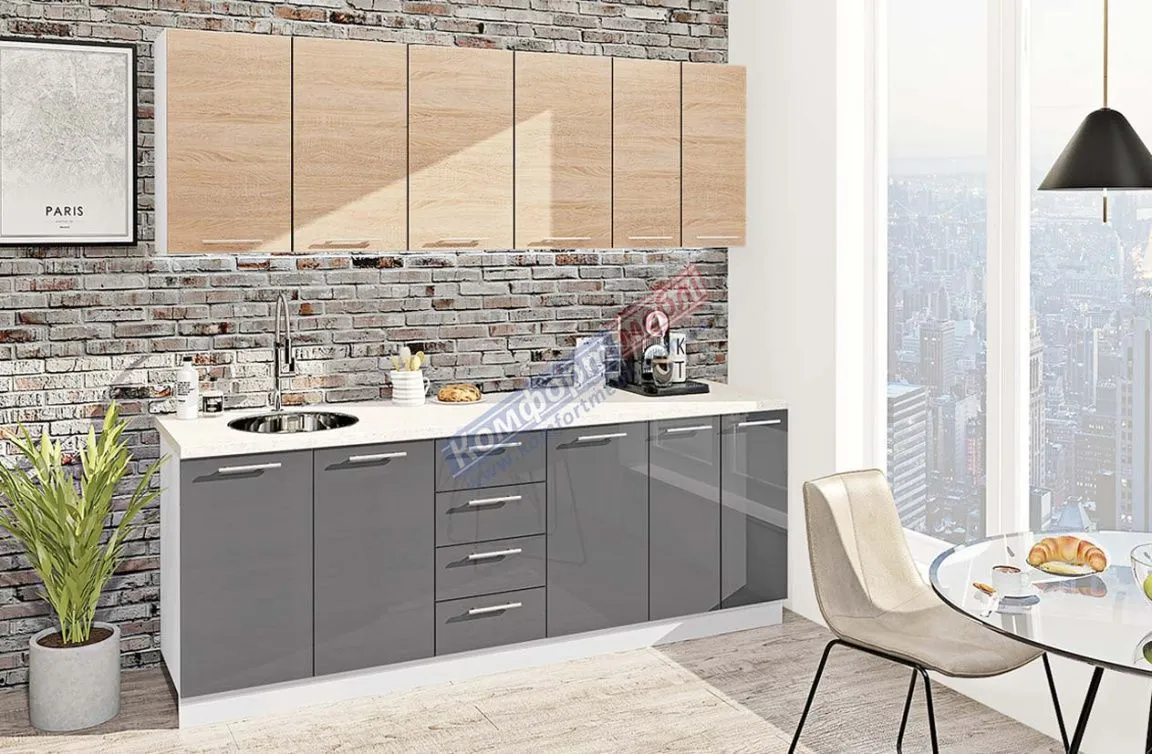 Готовая кухня Комфорт Эко 2,2 м прямая Графит, Дуб натуральный