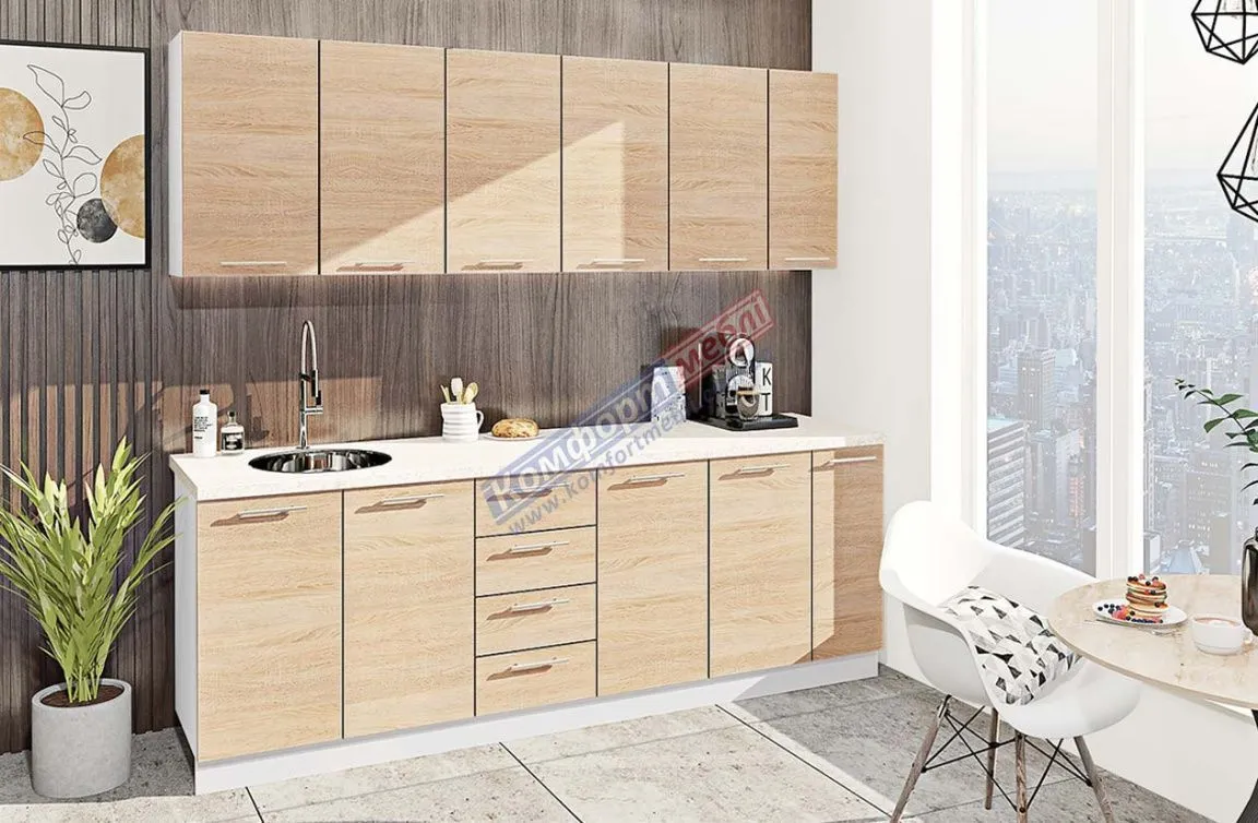 Готовая кухня Комфорт Эко 2.3 метра прямая Дуб натуральный
