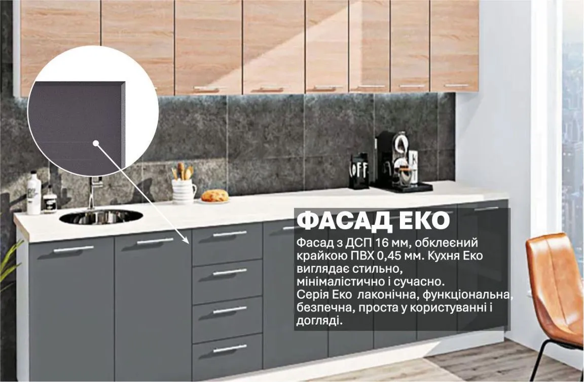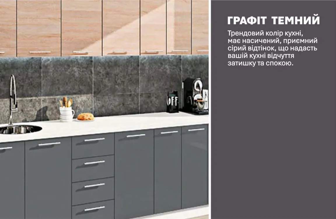 Готовая кухня Комфорт Эко 2.9 м прямая Графит, Дуб натуральный