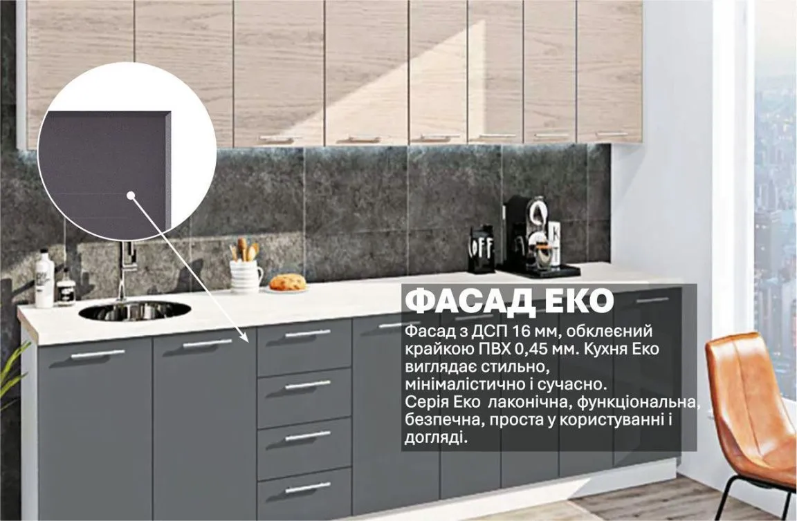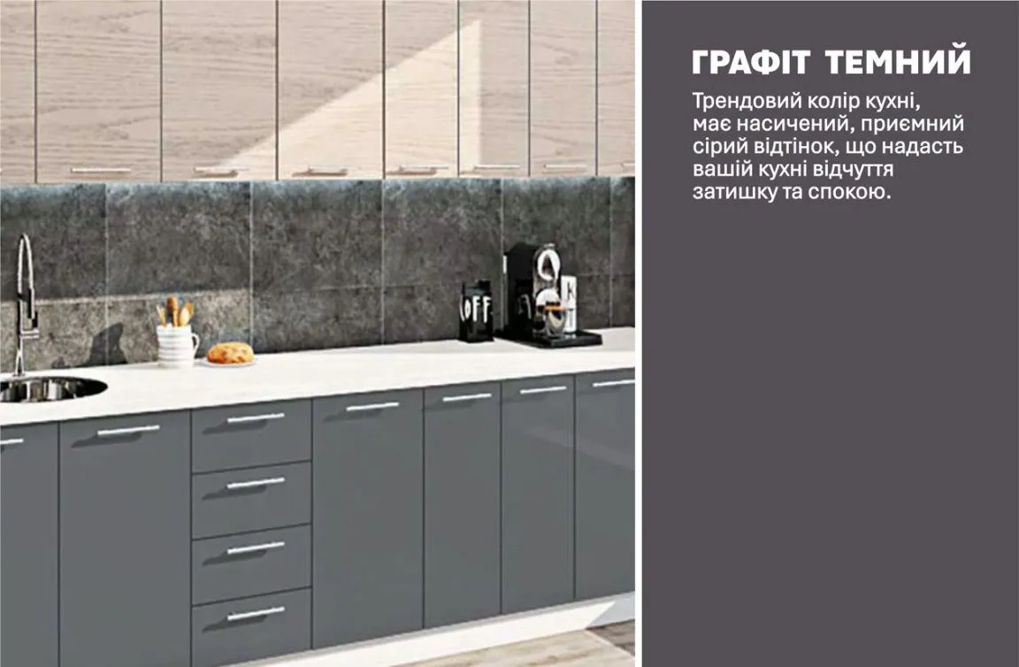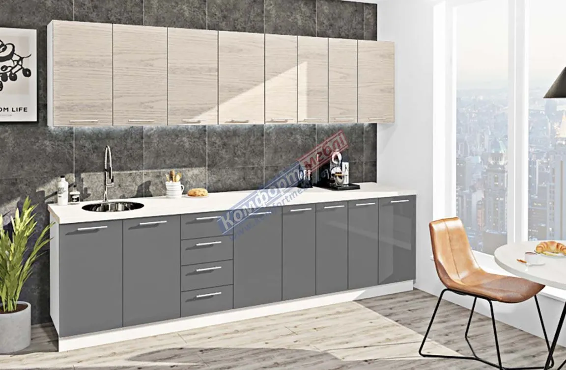Готовая кухня Комфорт Эко 2,9 м прямая Графит, Дуб отбеленный