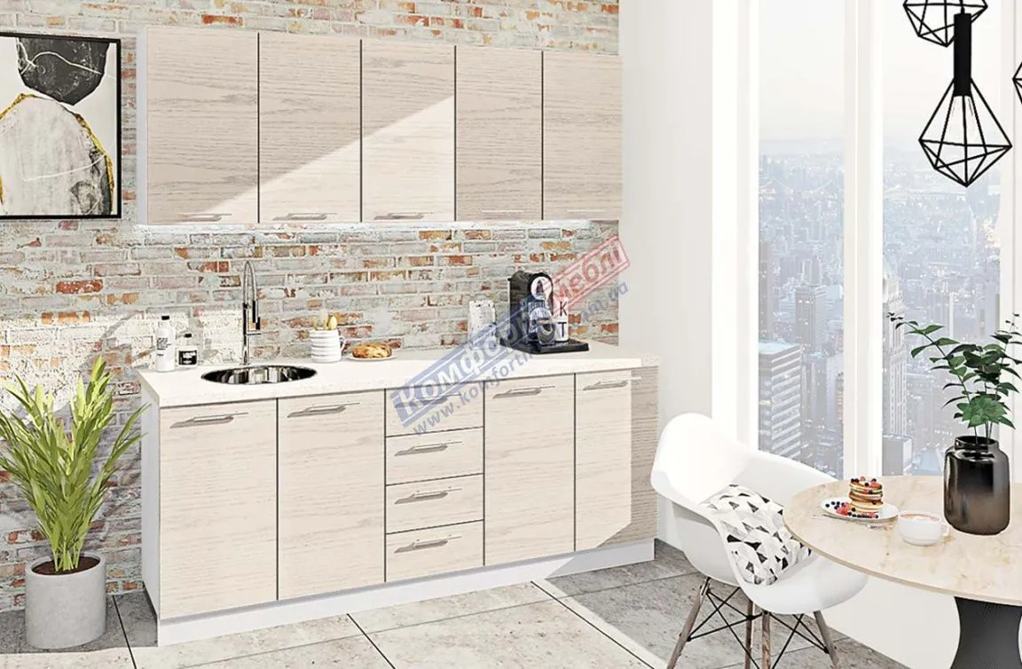 Готовая кухня Комфорт Эко 2 м прямая Дуб беленый