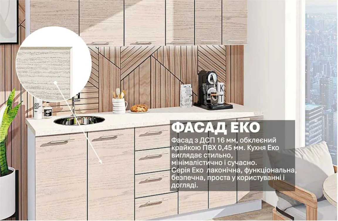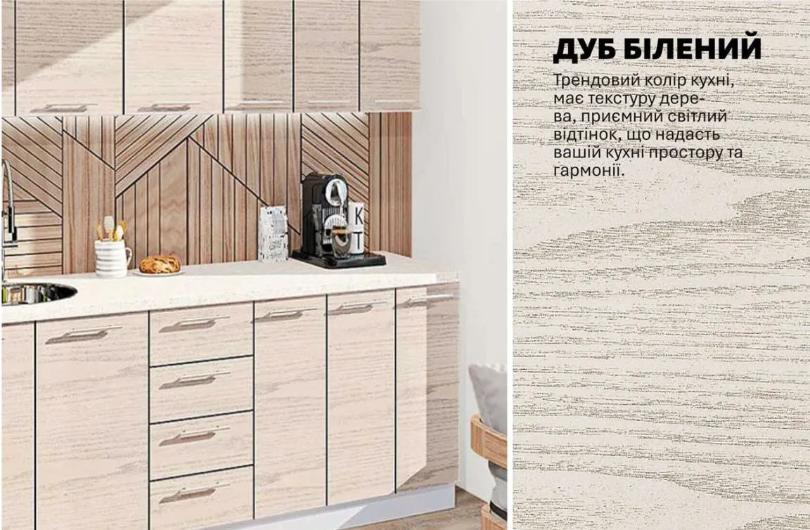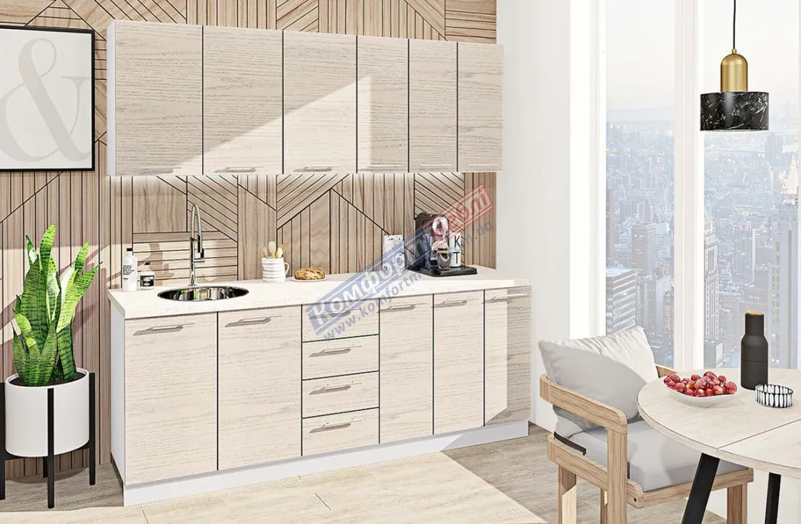 Готовая кухня Комфорт Эко 210 см прямая Дуб беленый