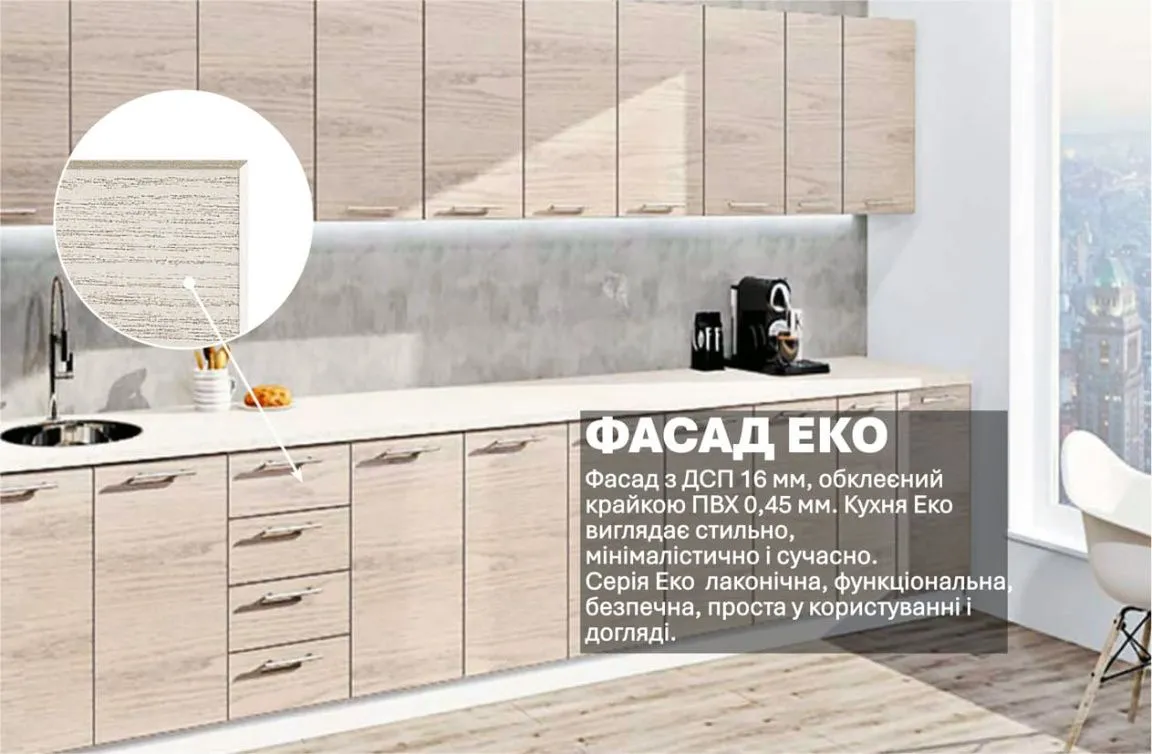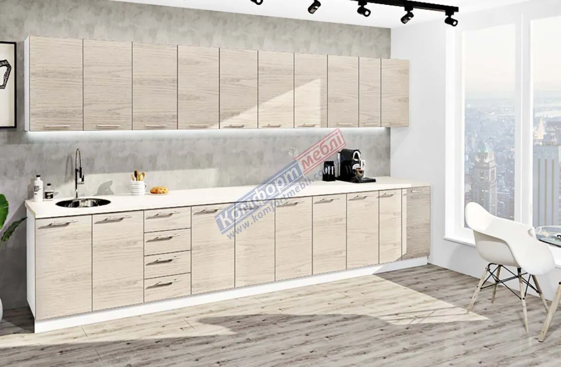 Готовая кухня Комфорт Эко 3,9 метра прямая дуб крафт белый