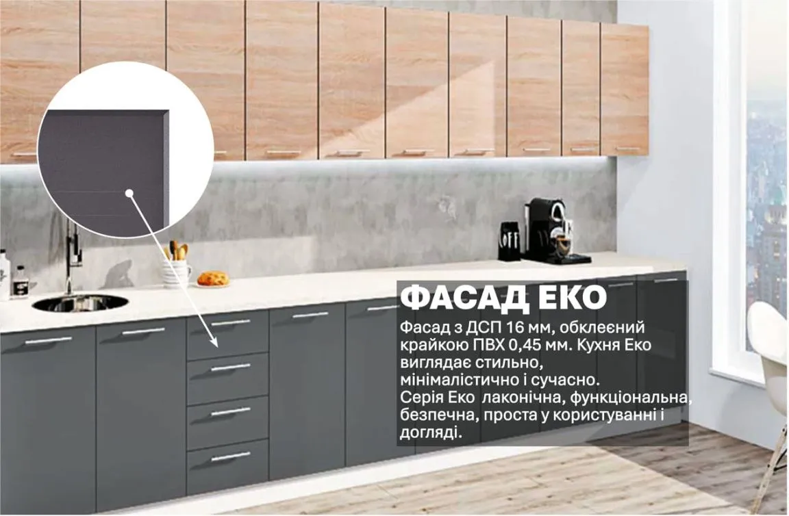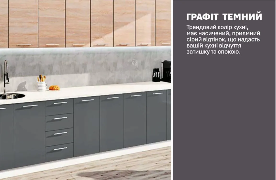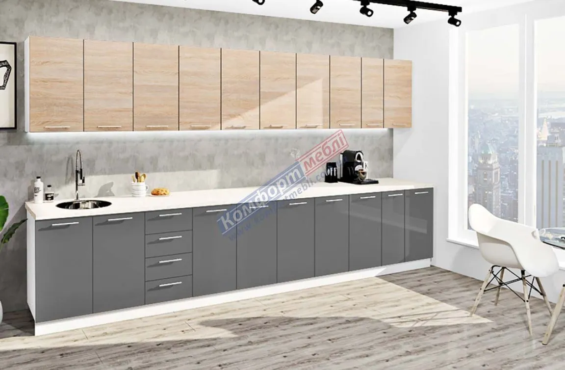 Готовая кухня Комфорт Эко 390 см прямая Графит, Дуб натуральный
