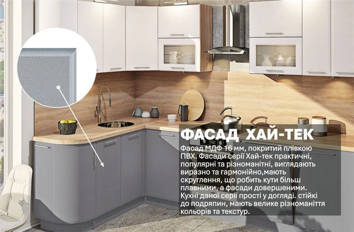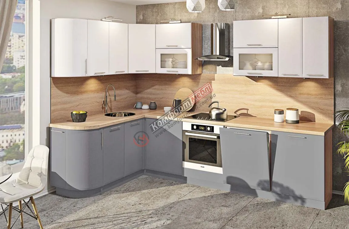 Готовая кухня Комфорт Хай-тек 3 х 1,7м угловая Белый, Пепельный