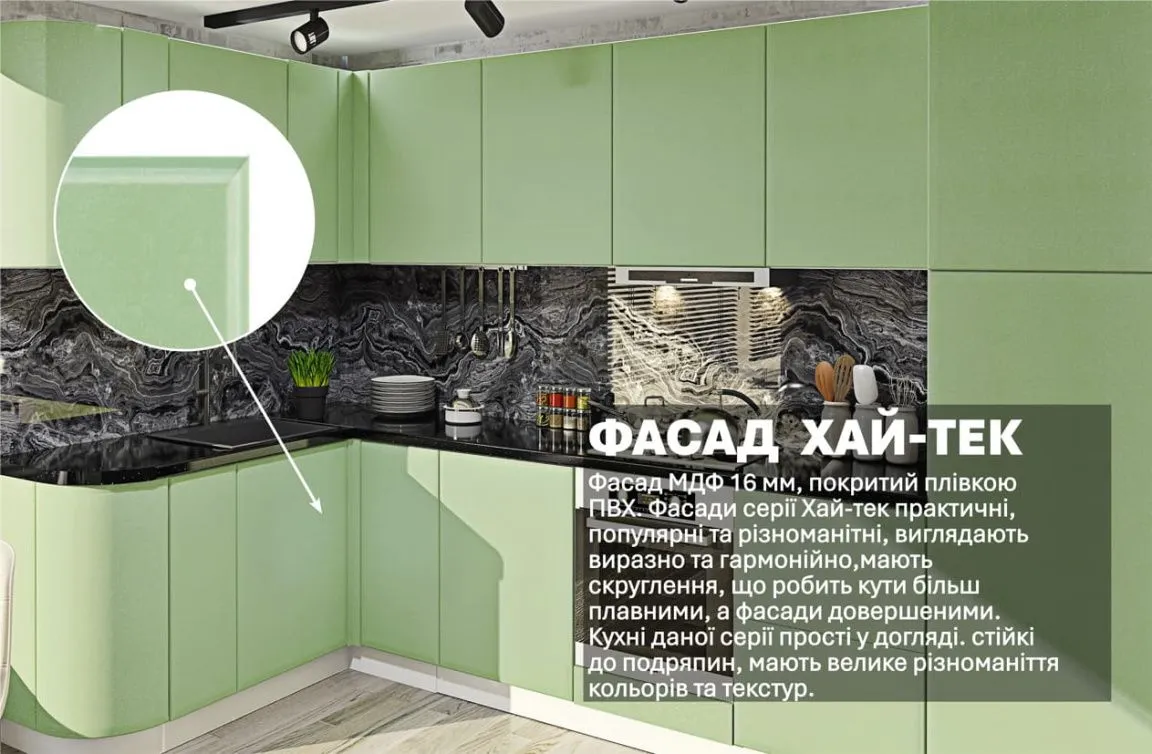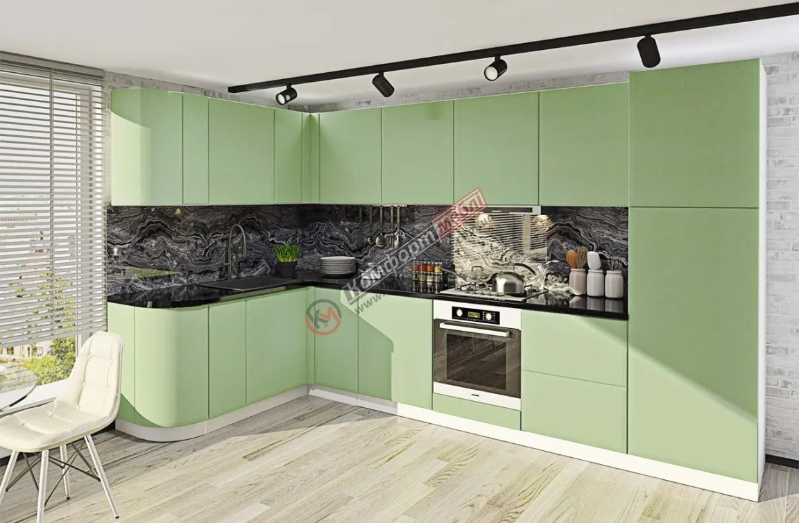 Готовая кухня Комфорт Хай-тек 3300 х 2800мм П-образная Салатовый