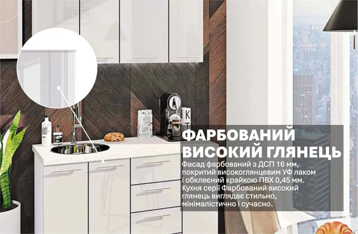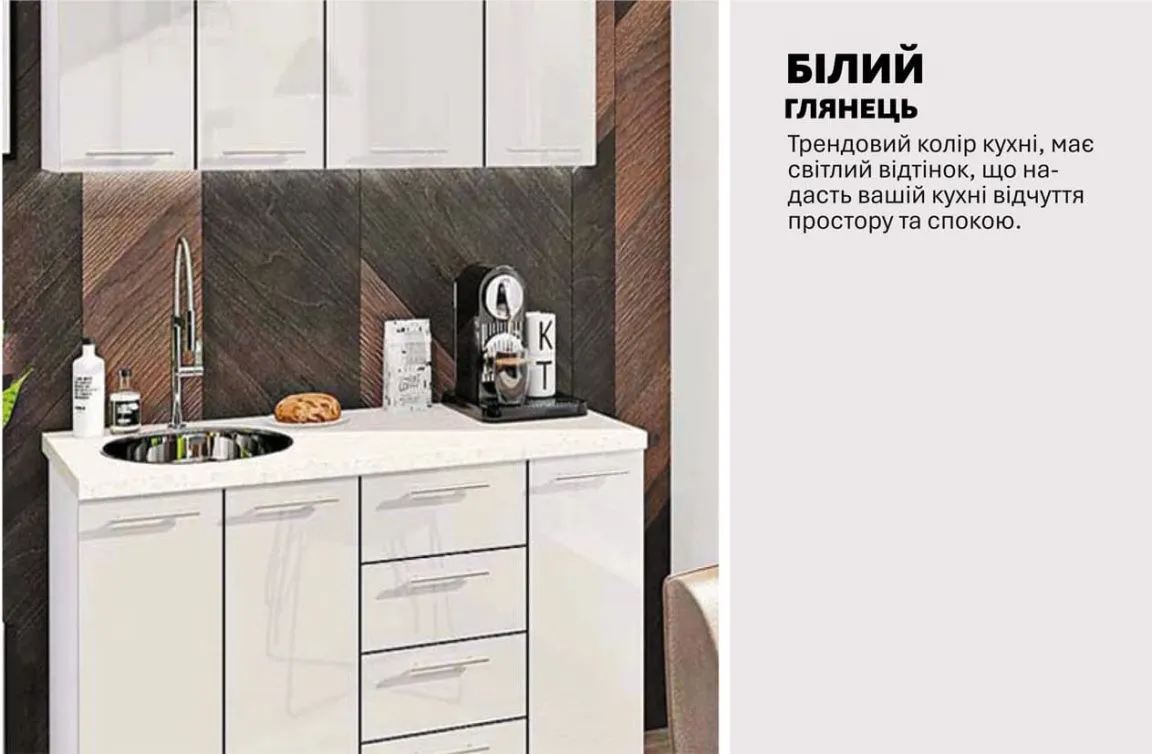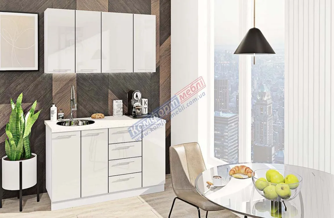 Готовая кухня Комфорт Крашеный высокий глянец 1,3 метра Белого цвета