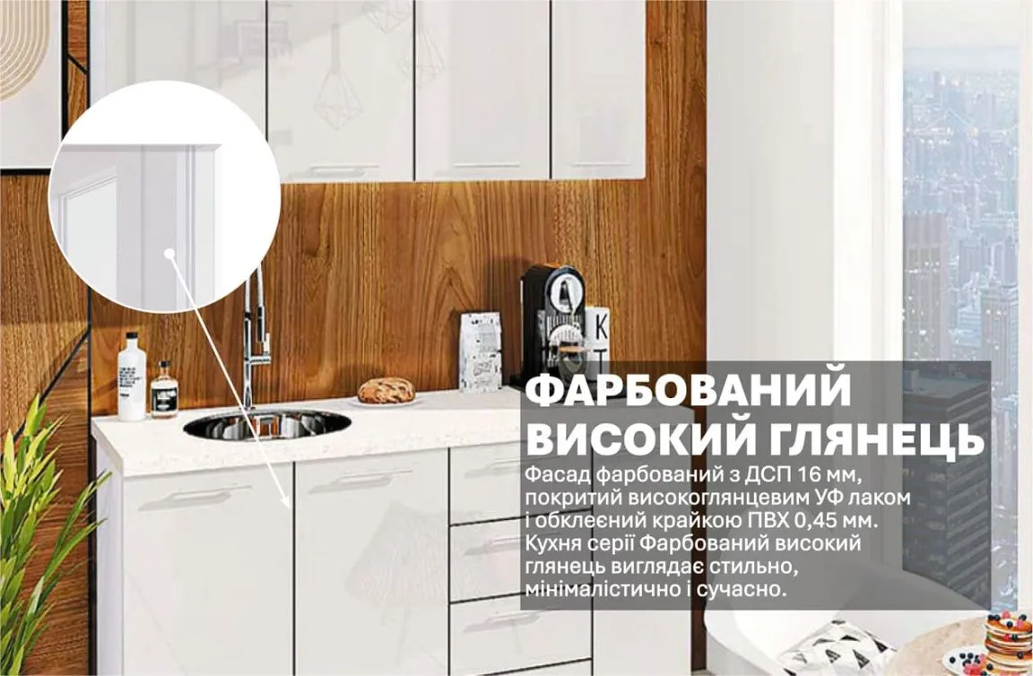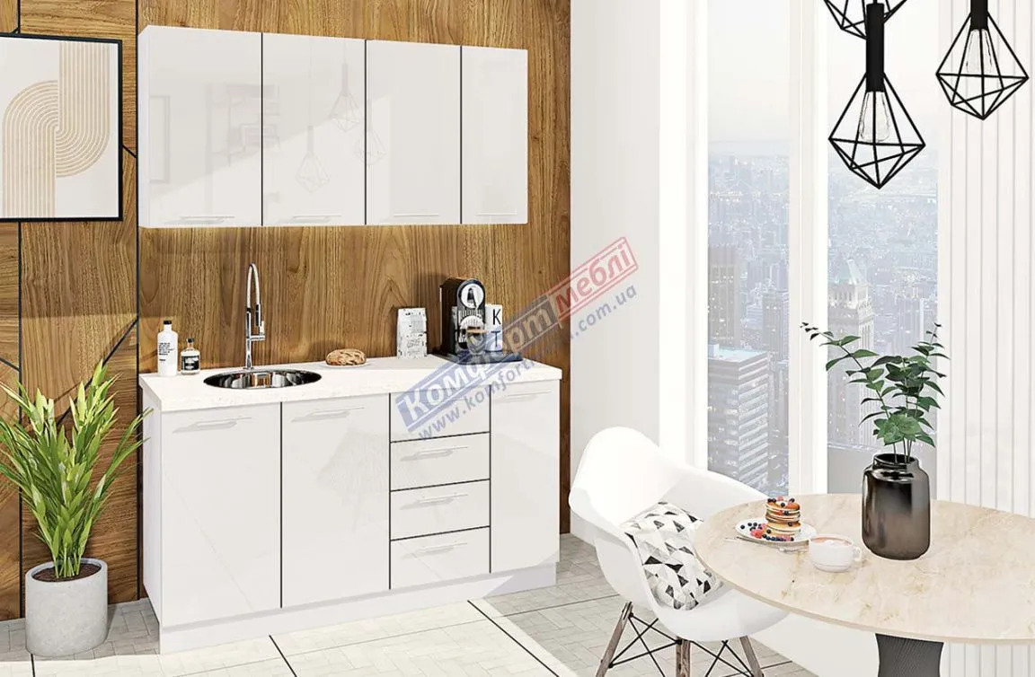 Готовая кухня Комфорт Крашеный высокий глянец 1,5 м Белый