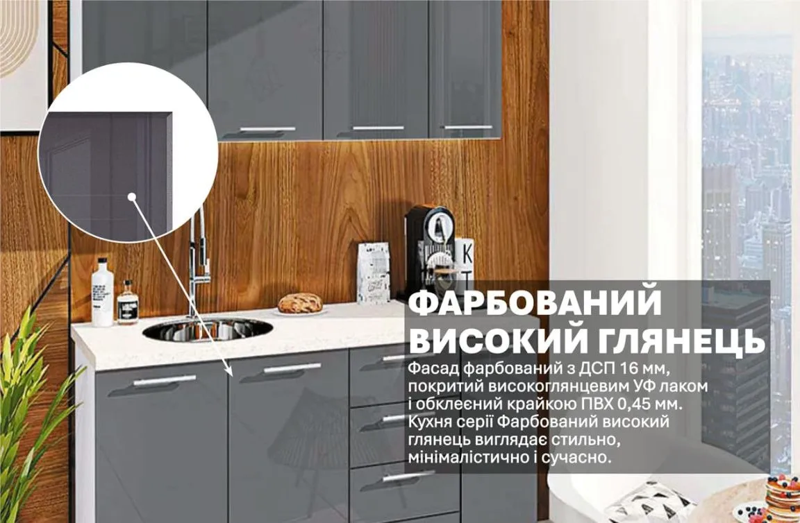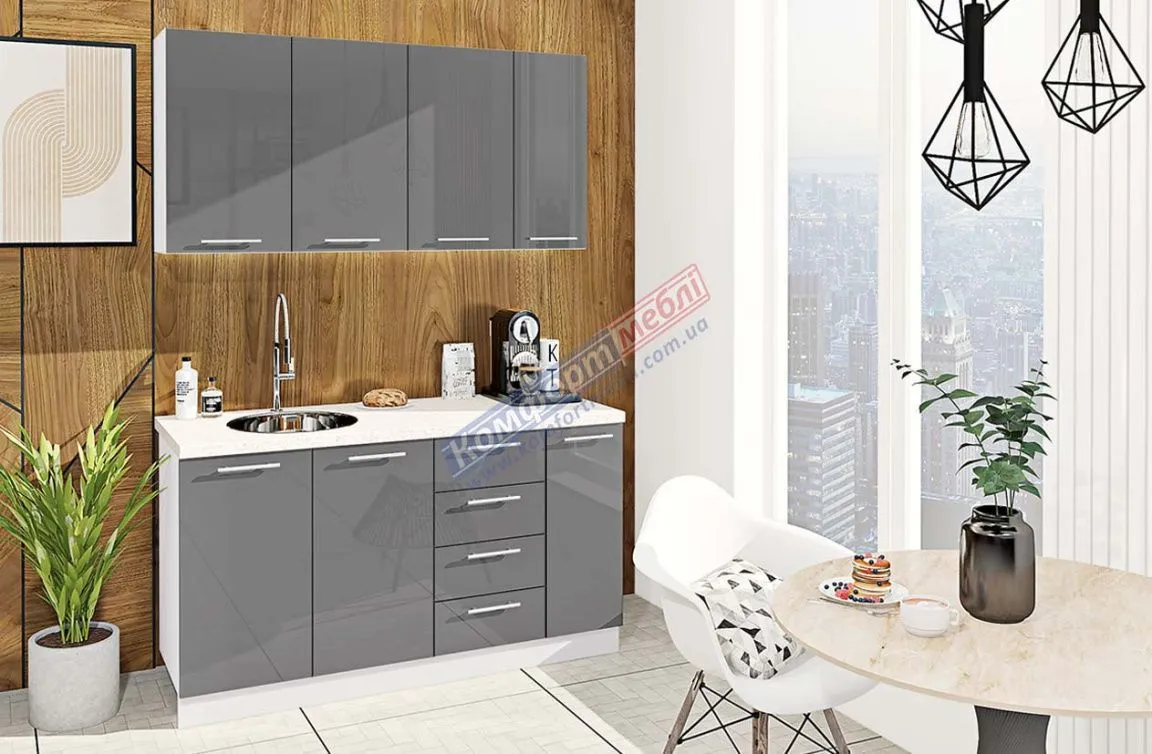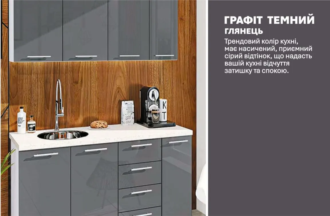 Готовая кухня Комфорт Крашеный высокий глянец 1.5 м Графит