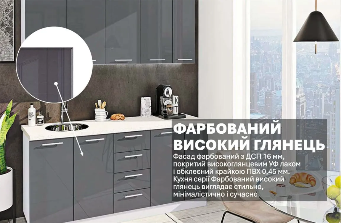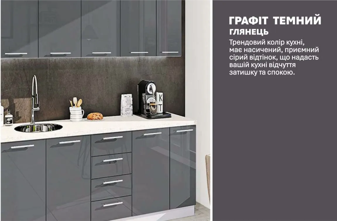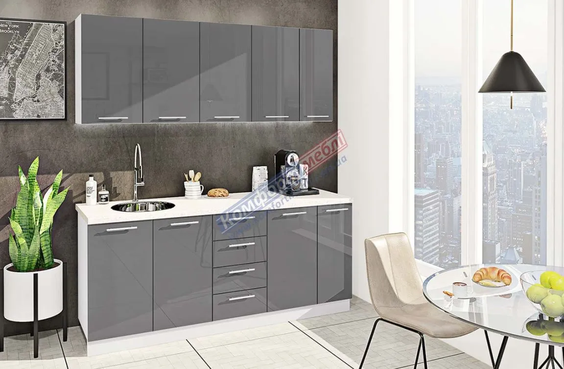 Готовая кухня Комфорт Крашеный высокий глянец 1.9 метра Графит