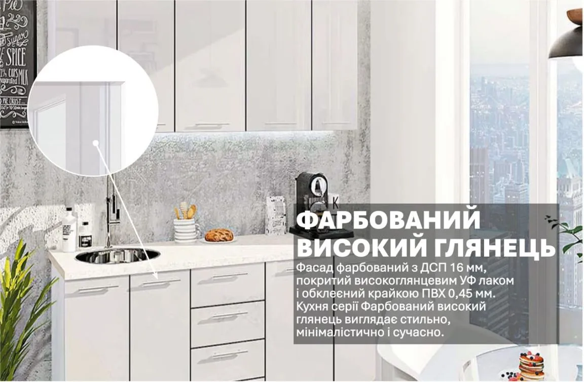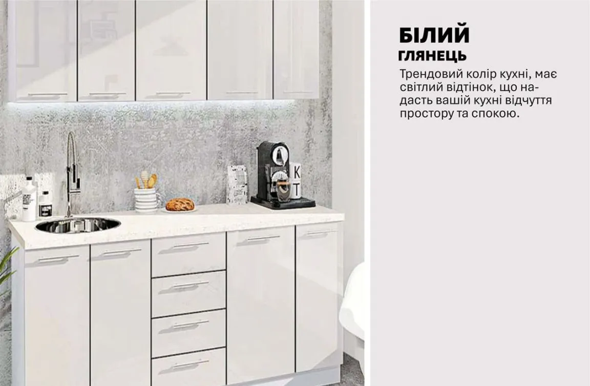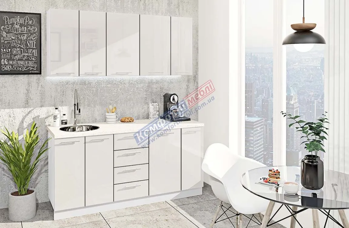 Готовая кухня Комфорт Крашеный высокий глянец 170см Белого цвета