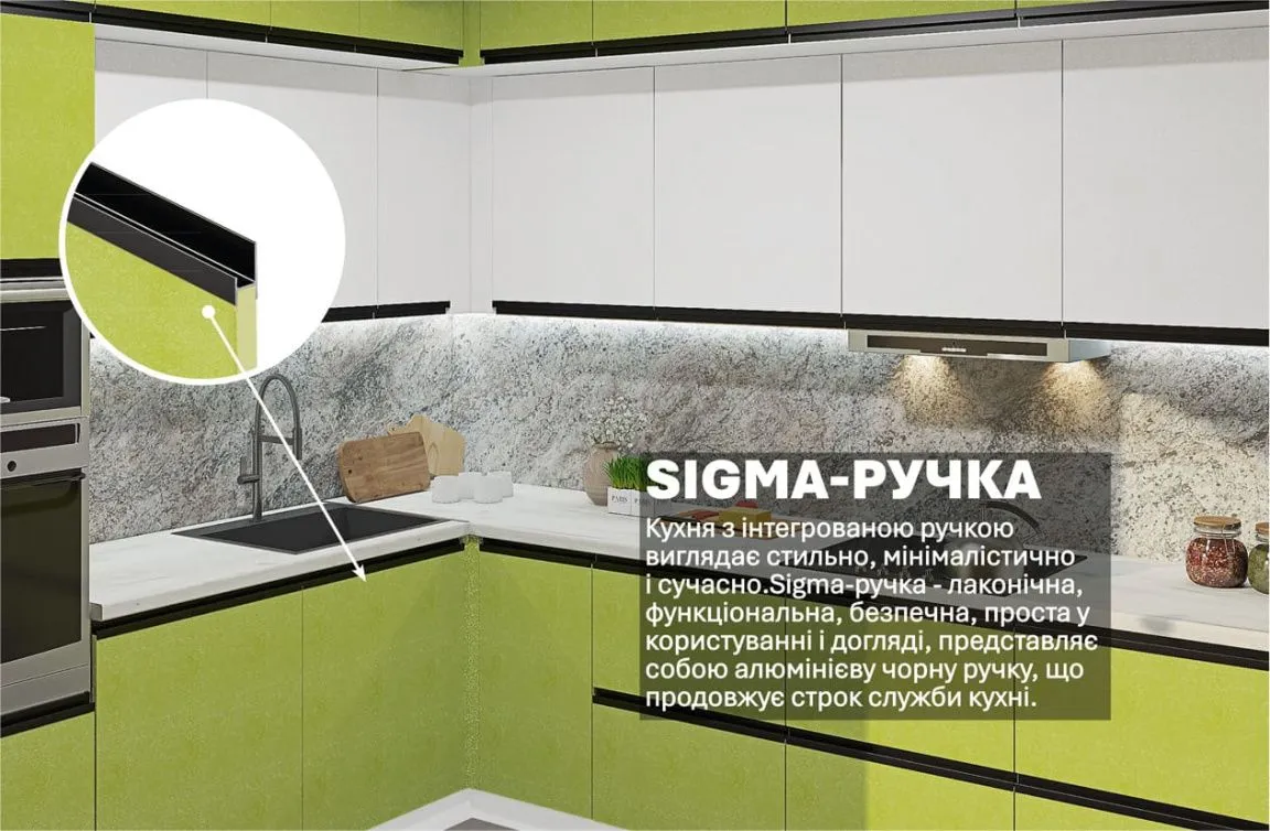 Готовая кухня Комфорт Sigma ручка 2,8 х 2,4 метра угловая Белый, Лайм