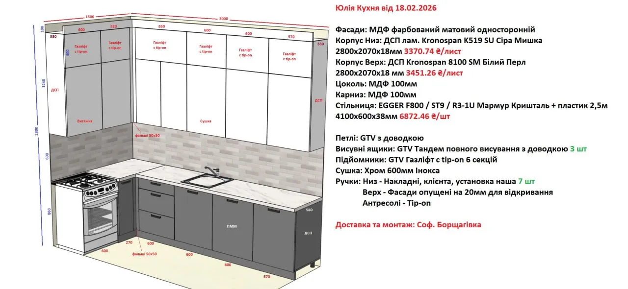 Мебель Вариант Кухни №368 18.02.2026