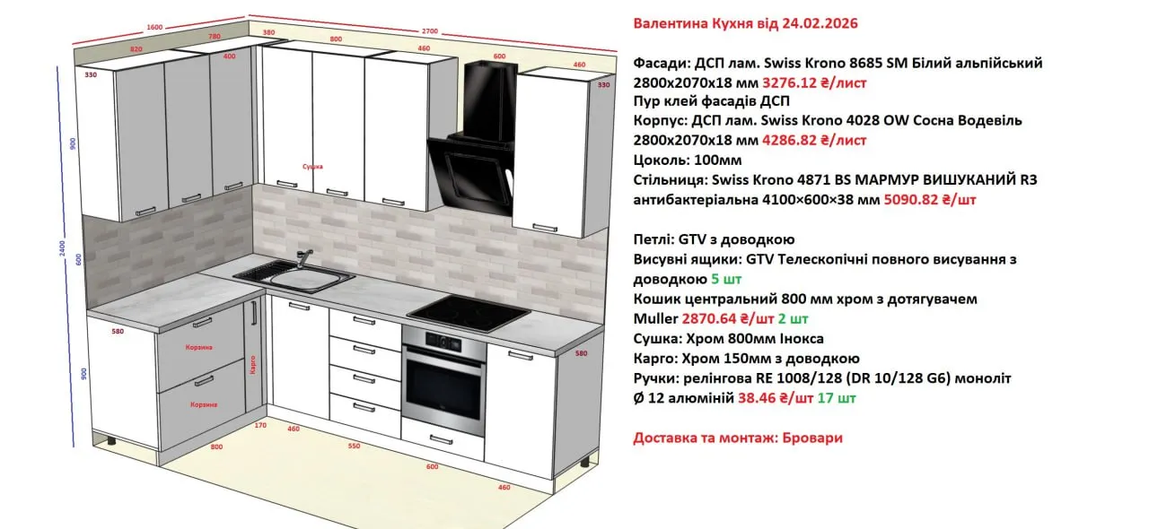 Мебель Вариант Кухни №377 24.02.2026