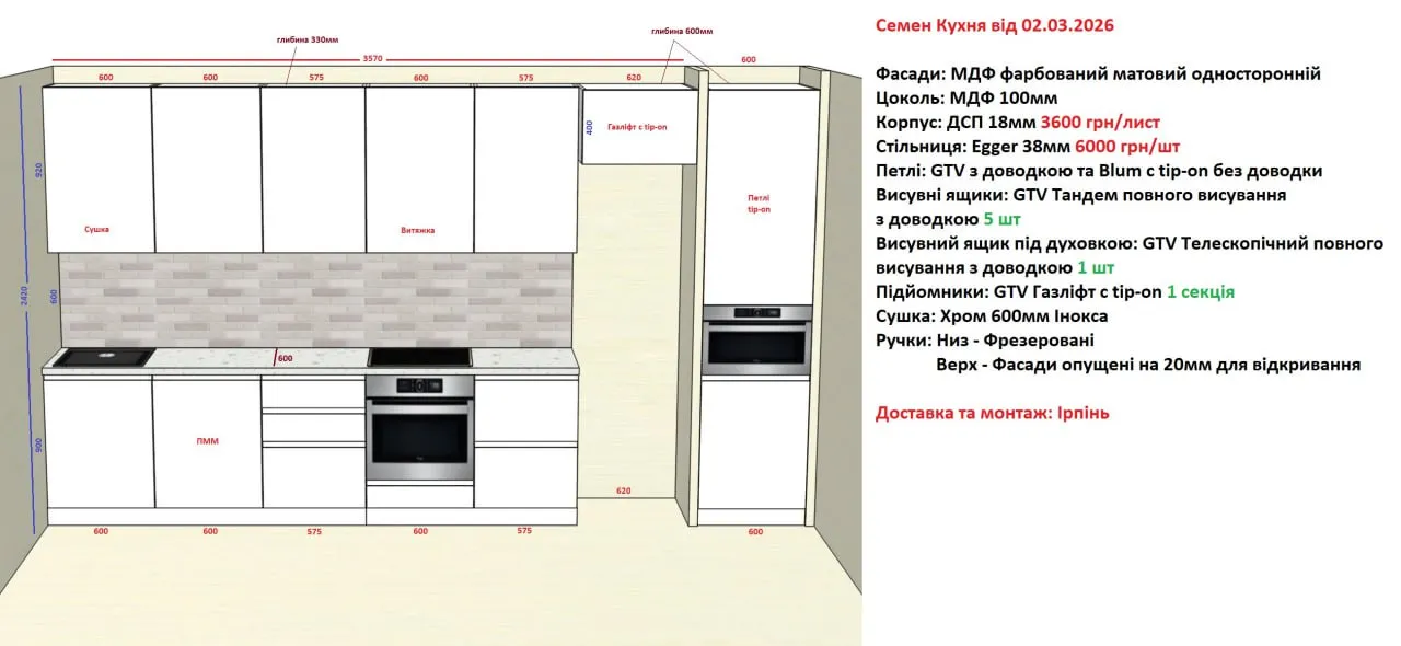 Мебель Вариант Кухни №381 02.03.2026