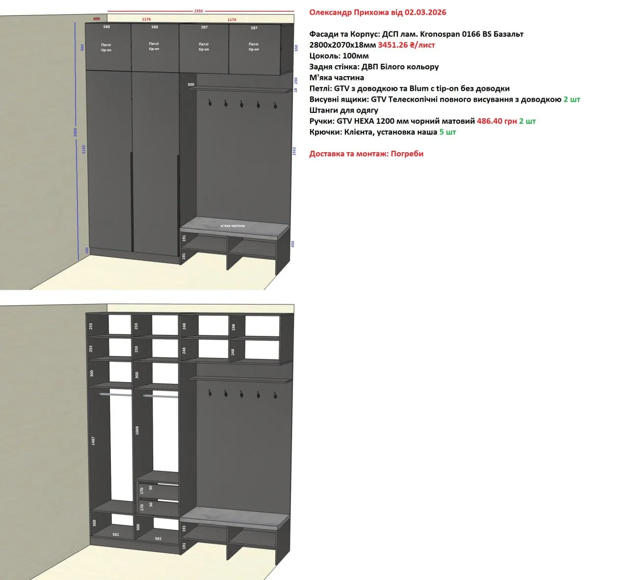 Мебель Вариант Прихожей №53 02.03.2026