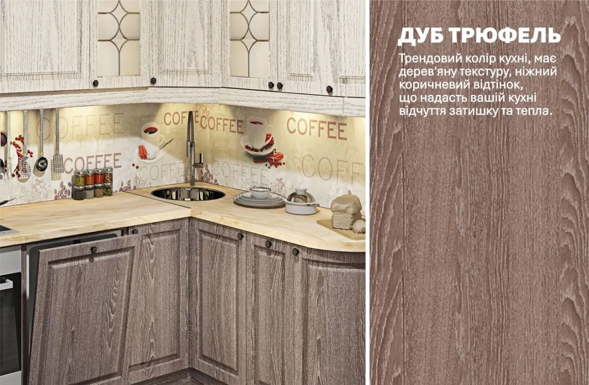 Модульная кухня Диамант 3х1.7 метра угловая Дуб беленый, Дуб трюфель