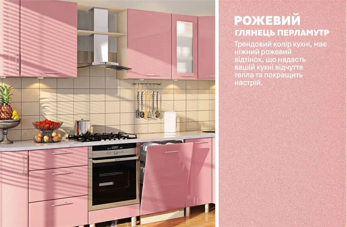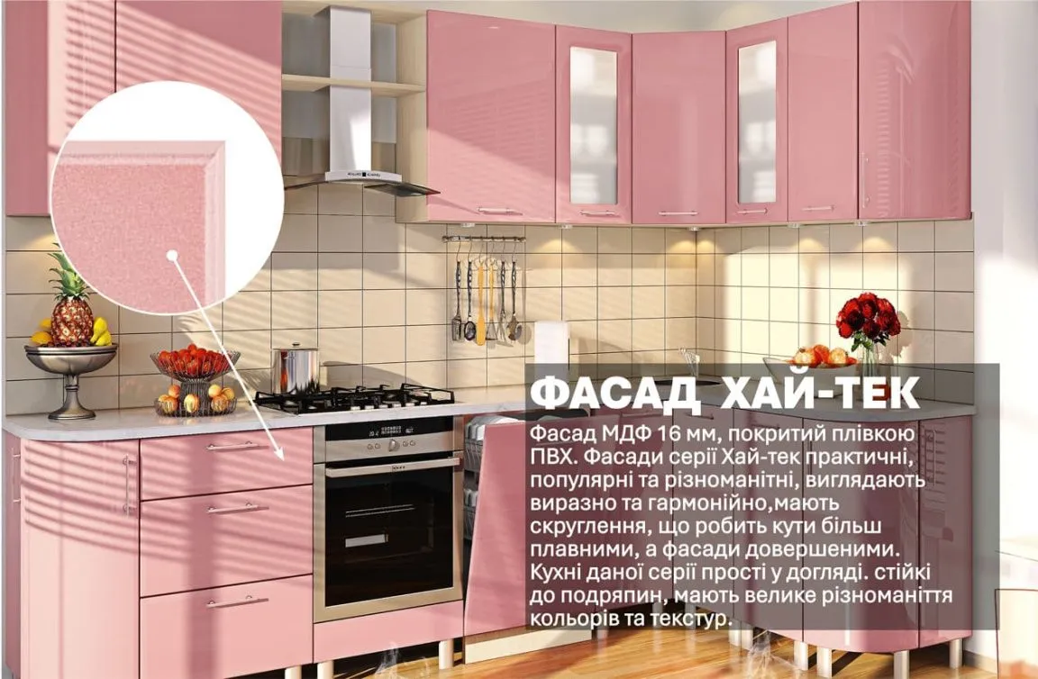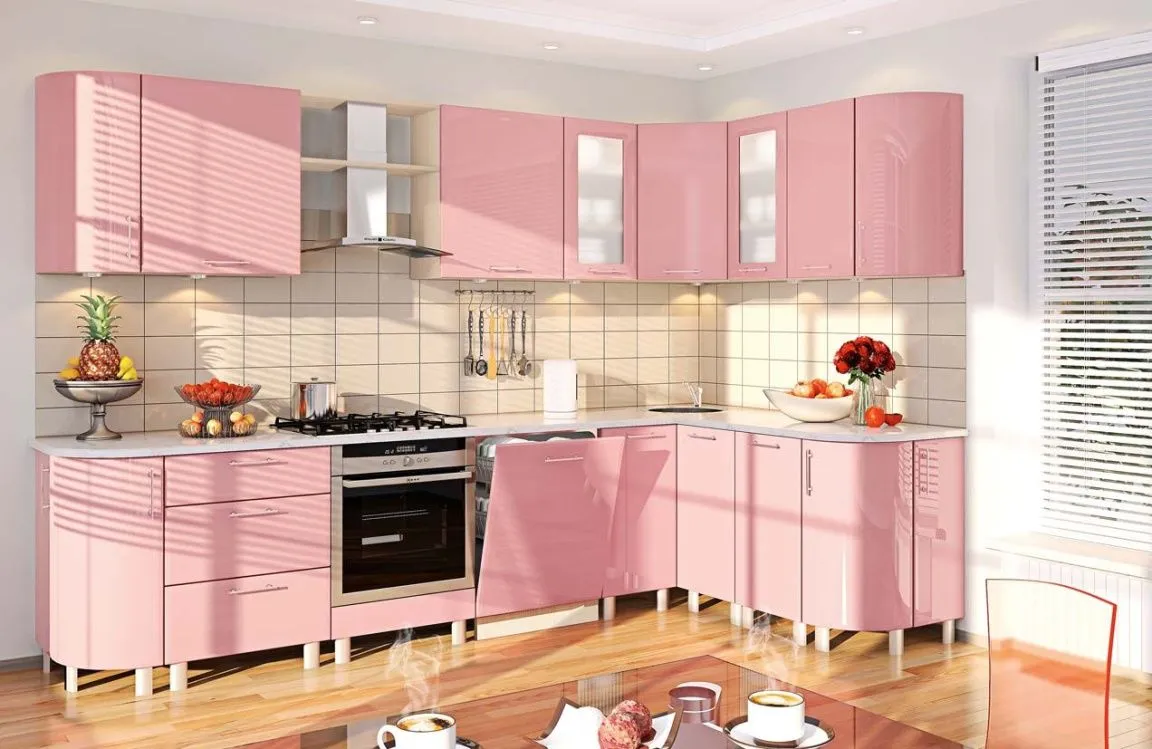 Модульная кухня Хай-тек 3,1 х 1,7м угловая Розовый