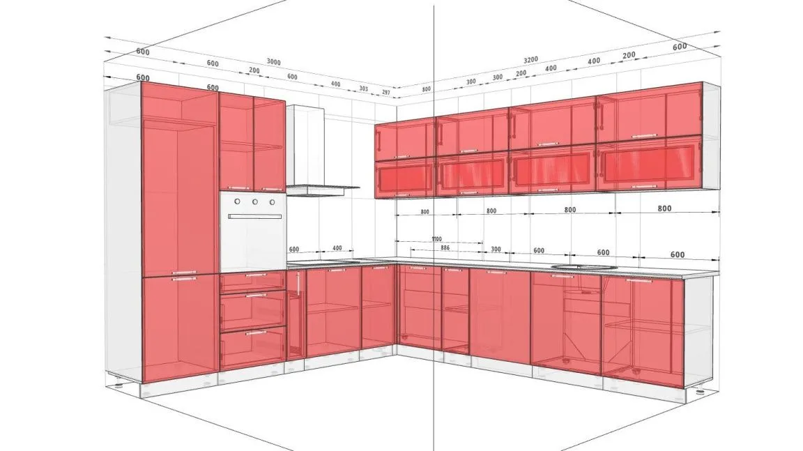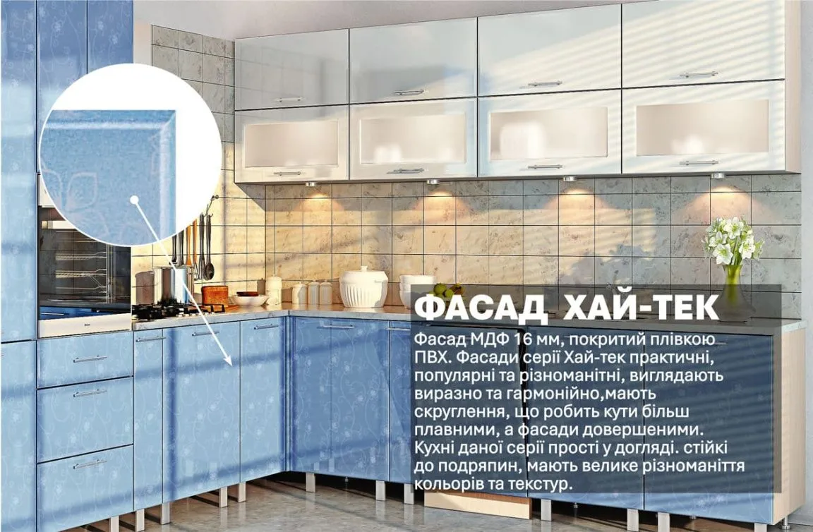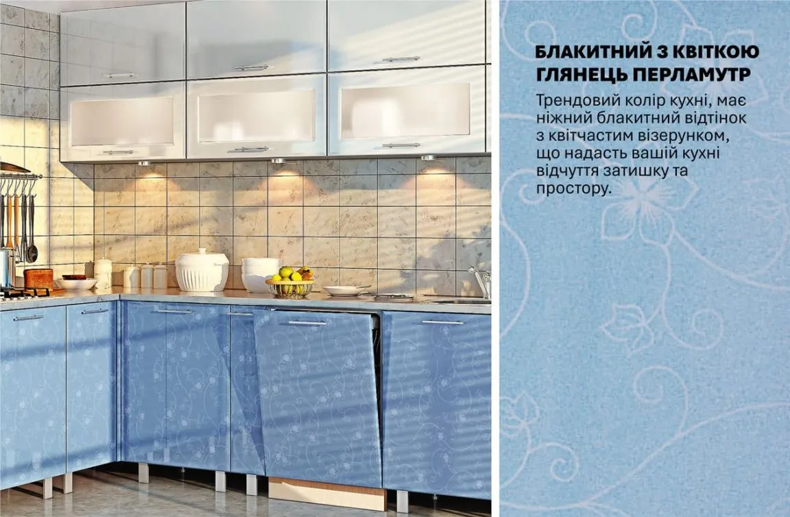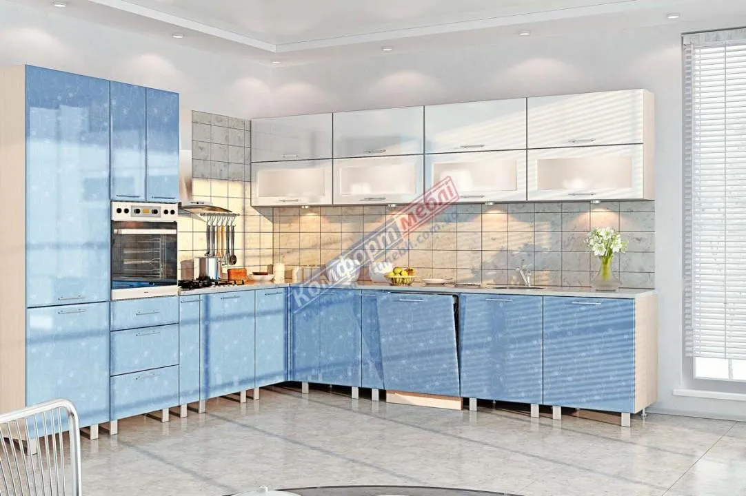 Модульная кухня Хай-тек 3,2х3м угловая Белый, Голубой