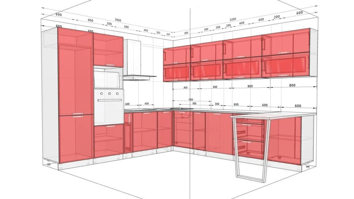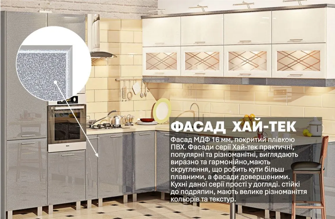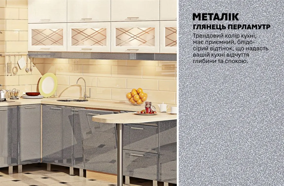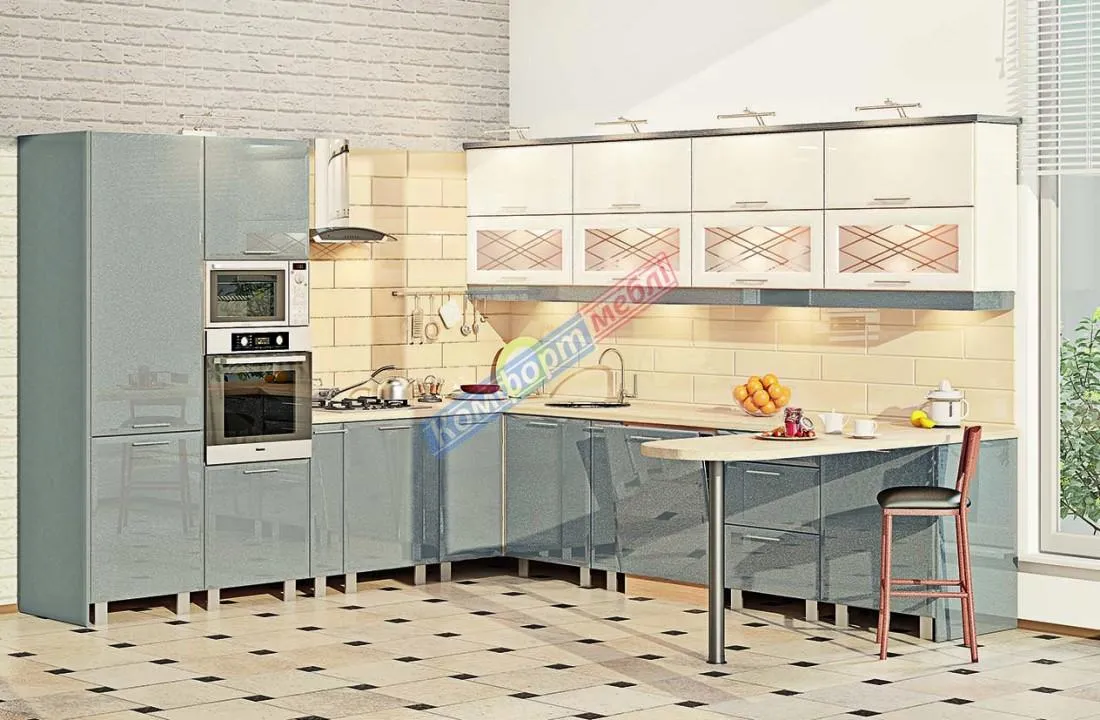 Модульная кухня Хай-тек 3,2х3м угловая Белый, Металлик