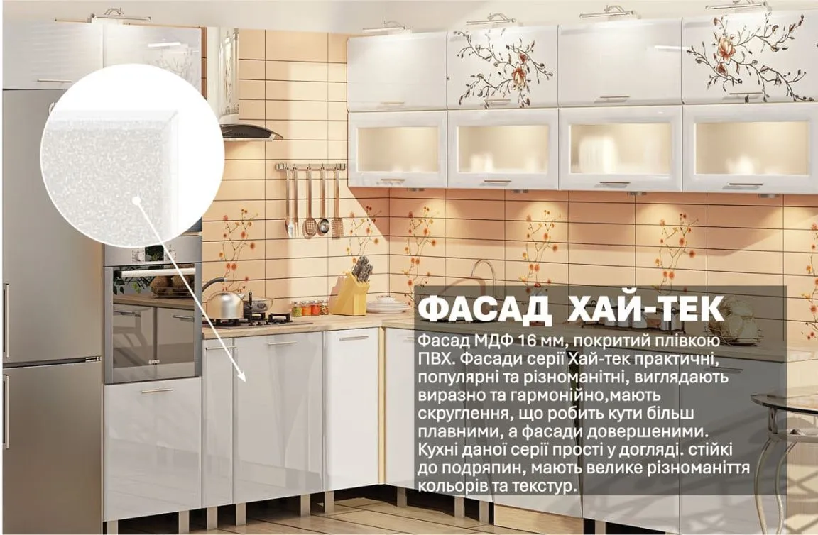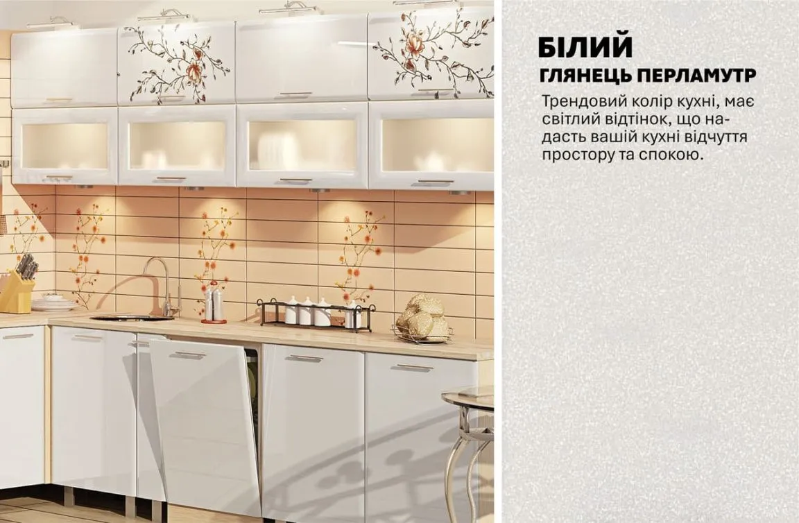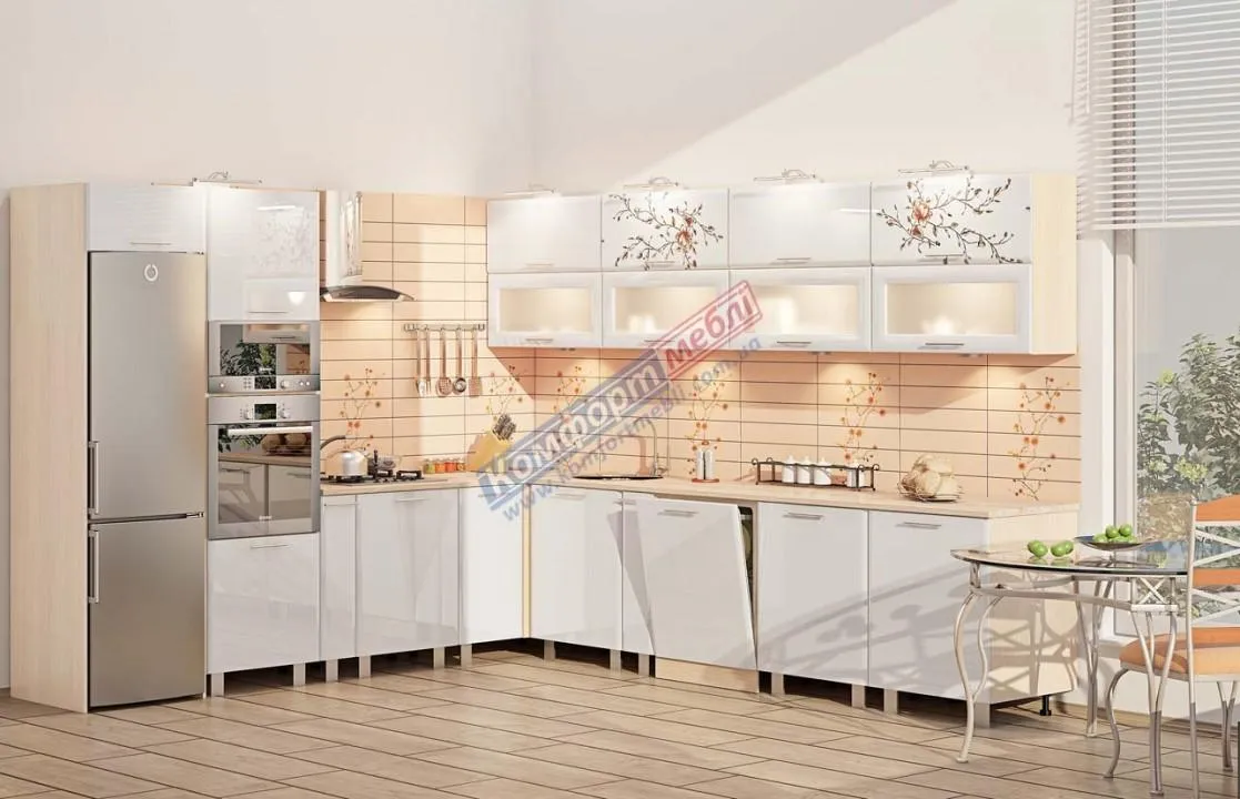 Модульная кухня Хай-тек 3,2х3м угловая Белый, Сакура