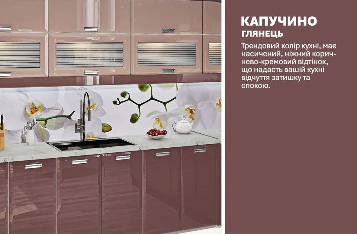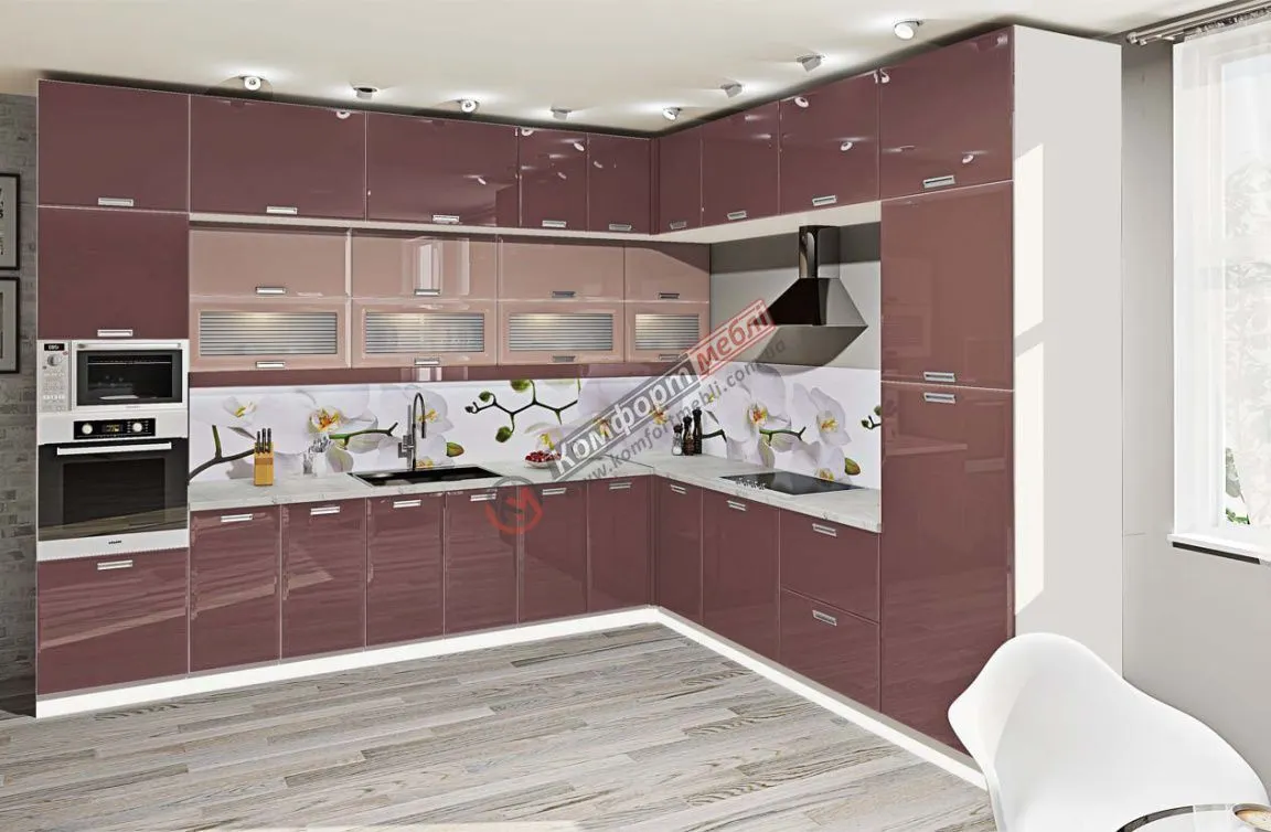 Модульная кухня Хай-тек 3,6х2,8м угловая Капучино, Лате 1