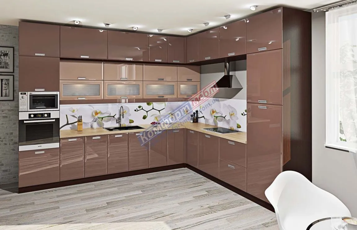 Модульная кухня Хай-тек 3,6х2,8м угловая Капучино, Лате