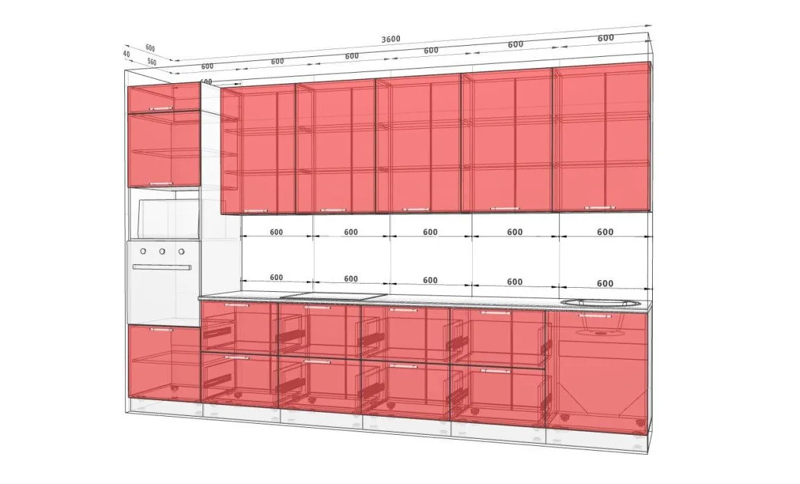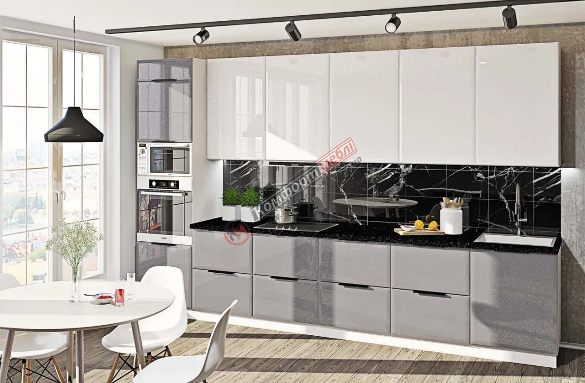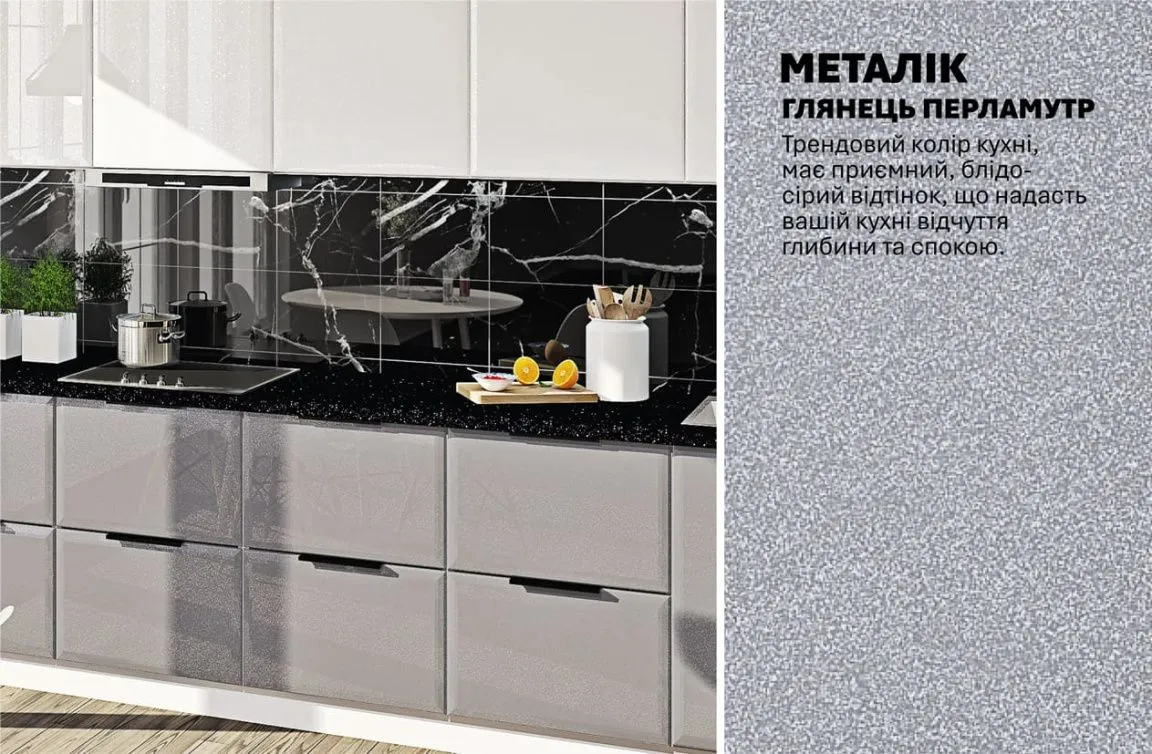 Модульная кухня Хай-тек 3,6м Белый, Металлик