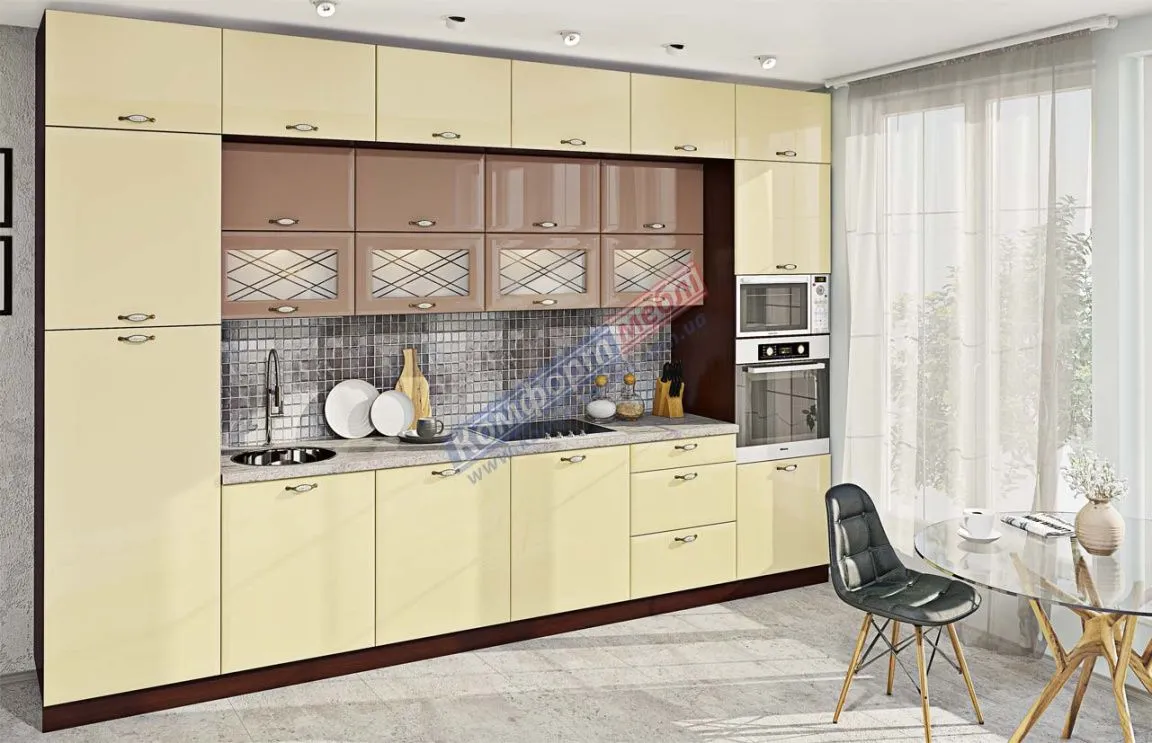 Модульная кухня Хай-тек 3,6м Ваниль, Лате