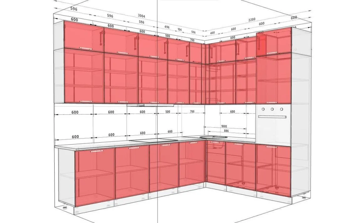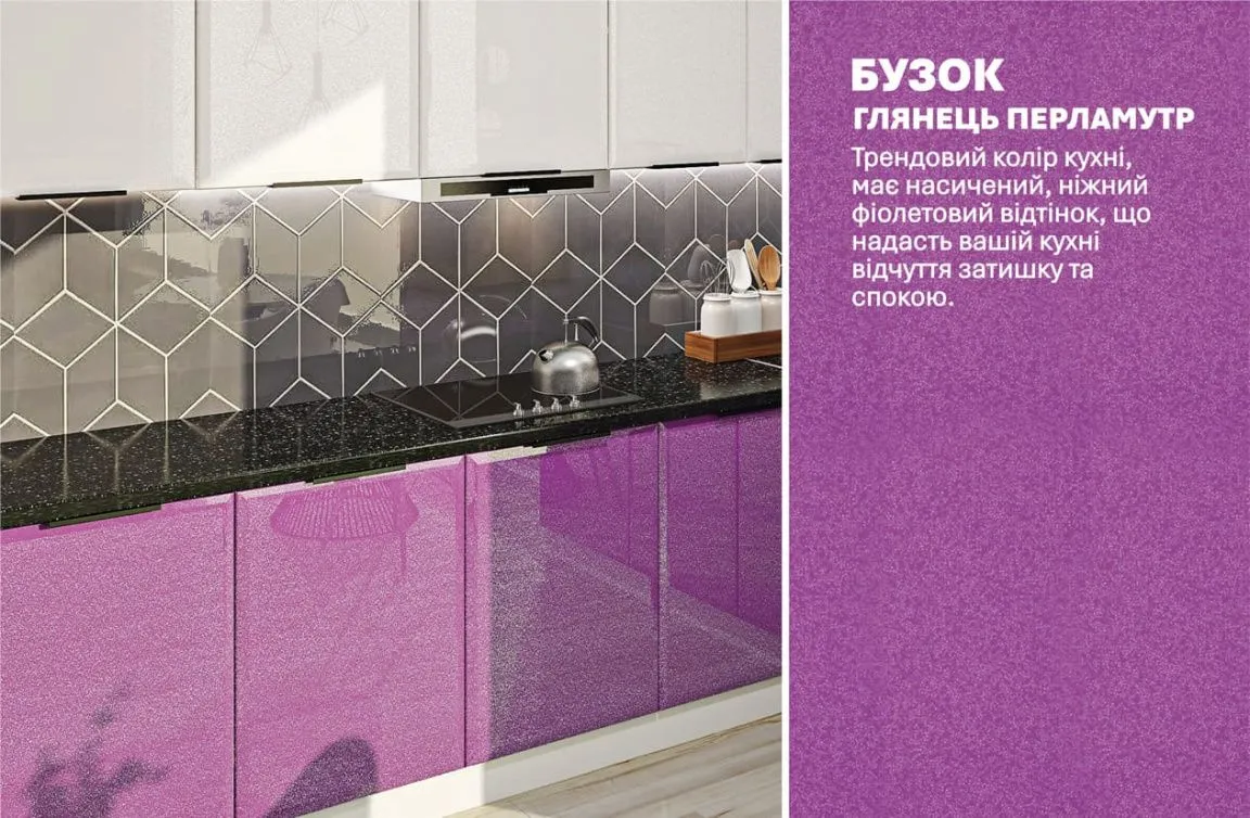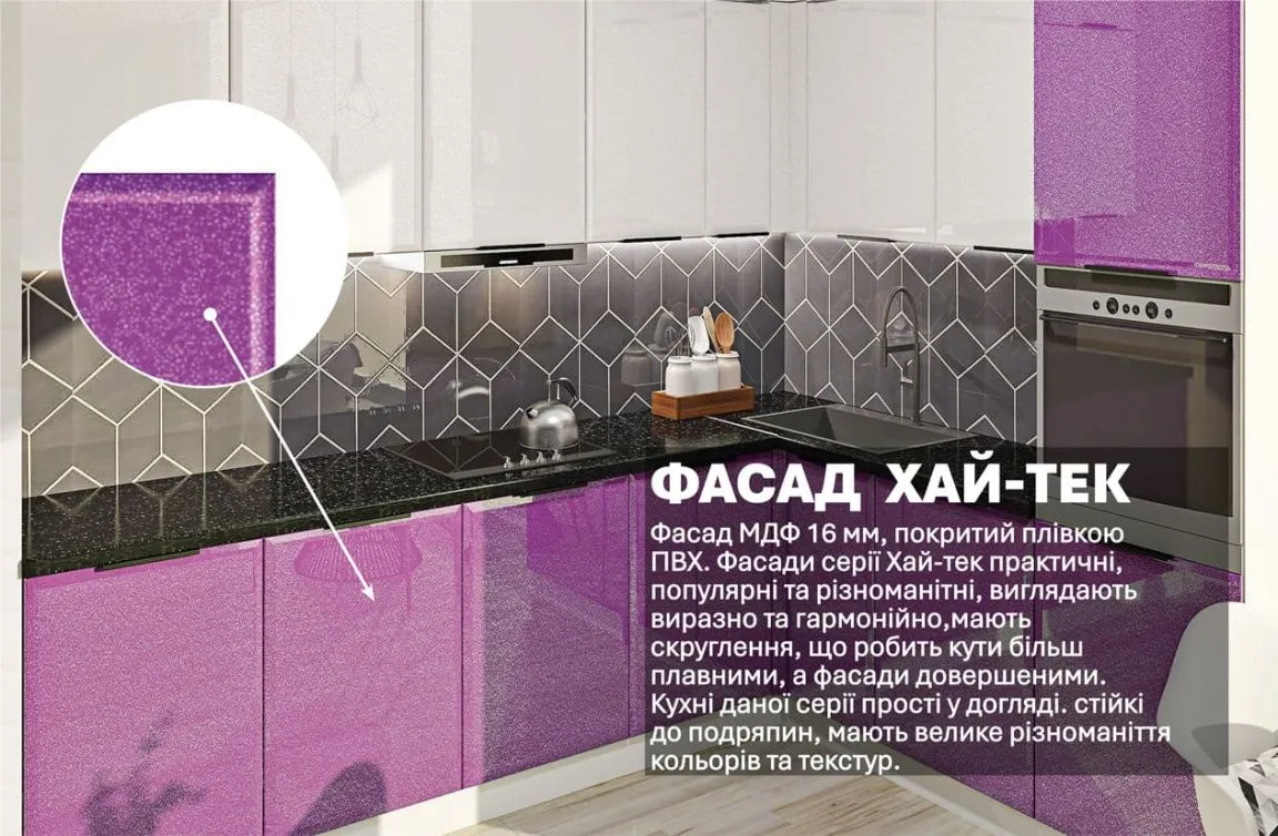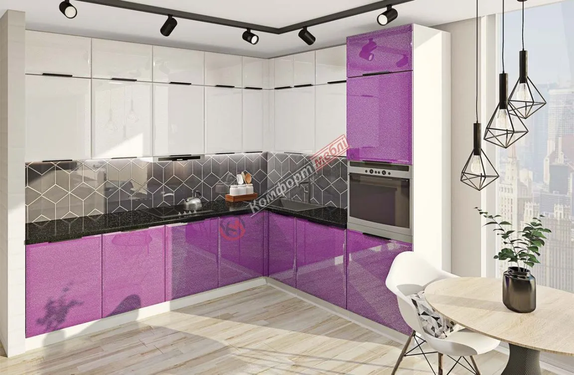 Модульная кухня Хай-тек 300 см х 220 см угловая Белый, Сирень