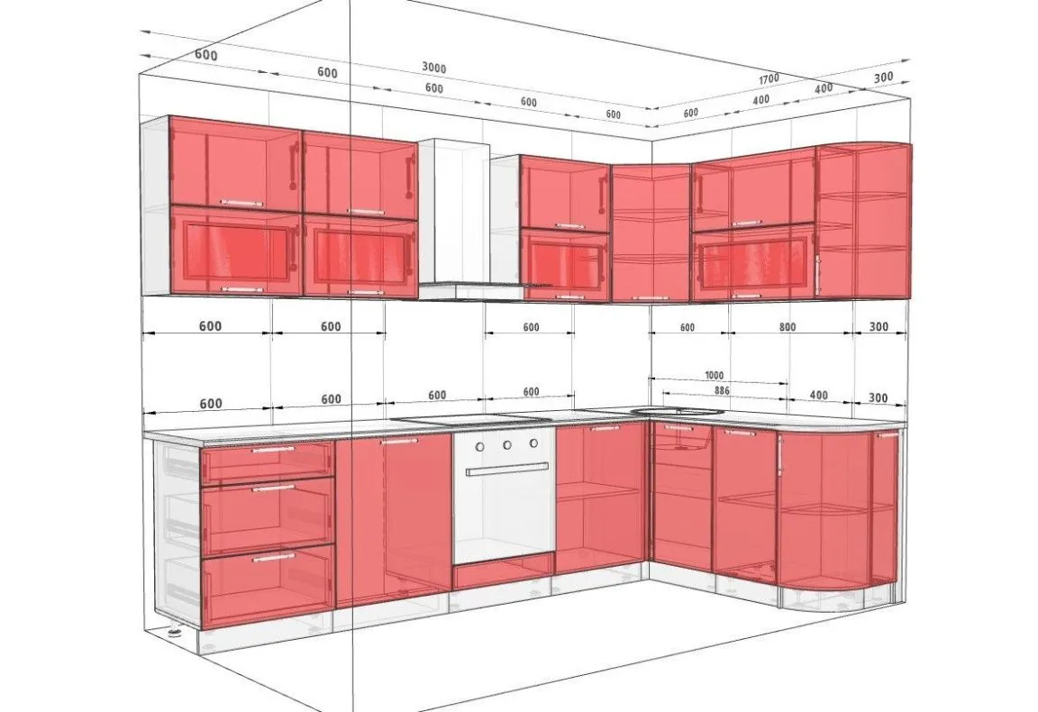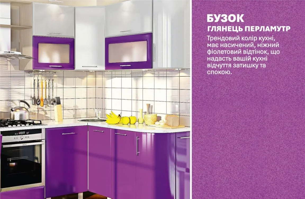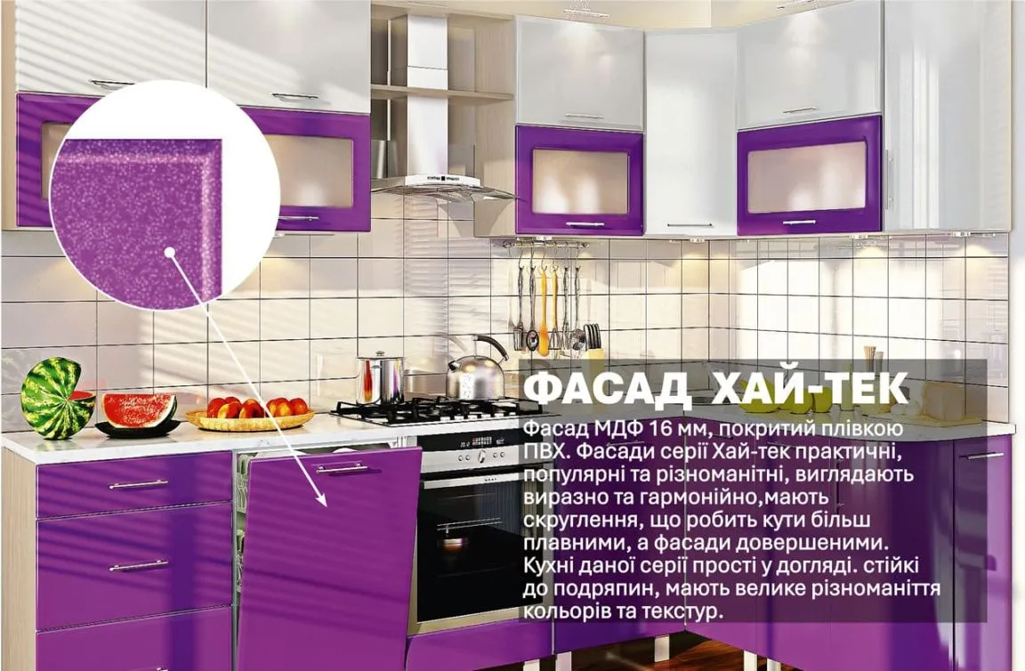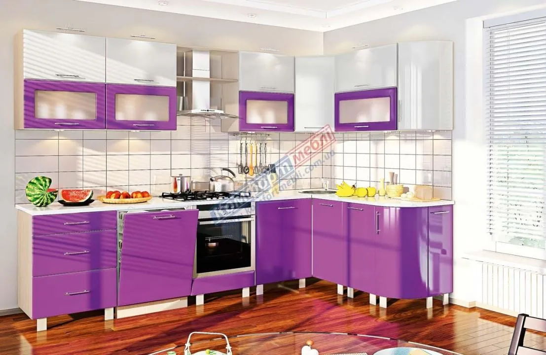 Модульная кухня Хай-тек 300см х 170см угловая Белого цвета, Сирень