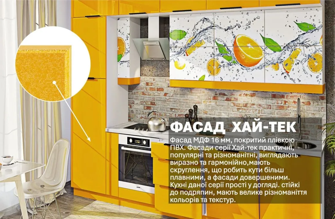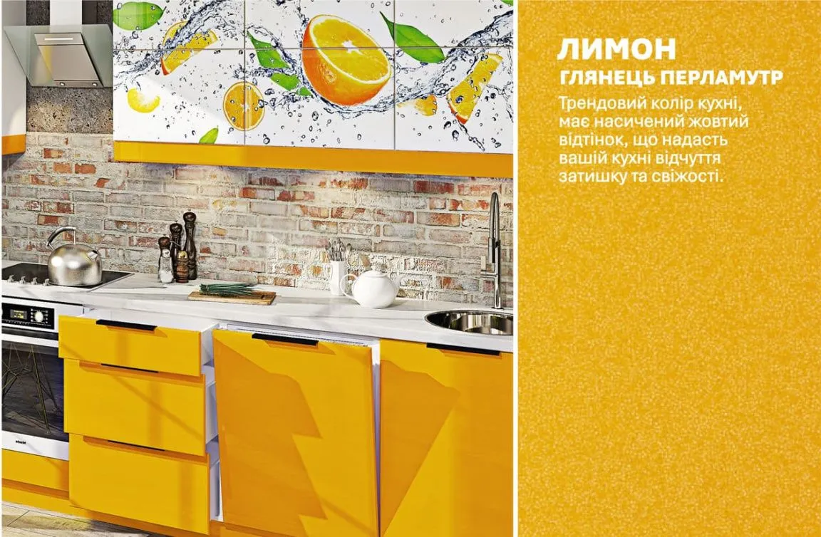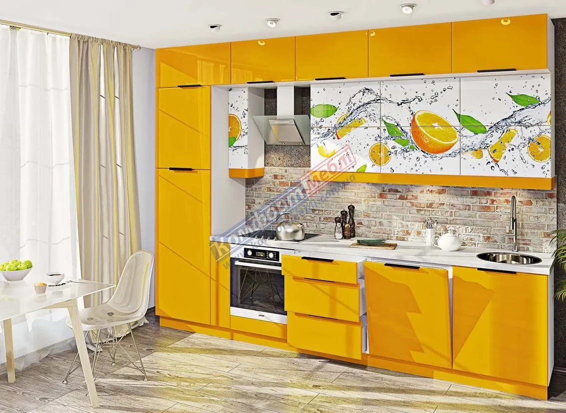 Модульная кухня Хай-тек с цветной печатью 3.2м Лимон