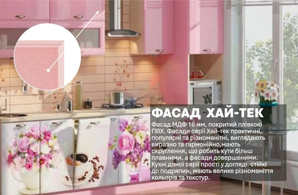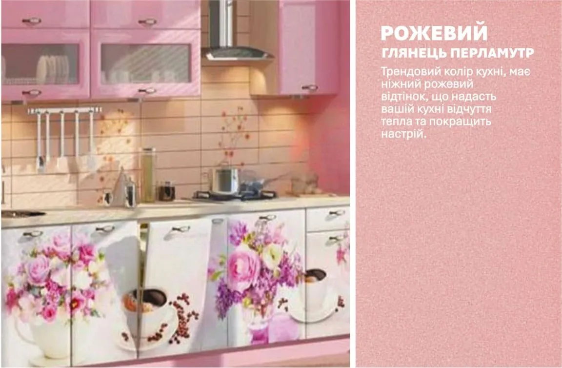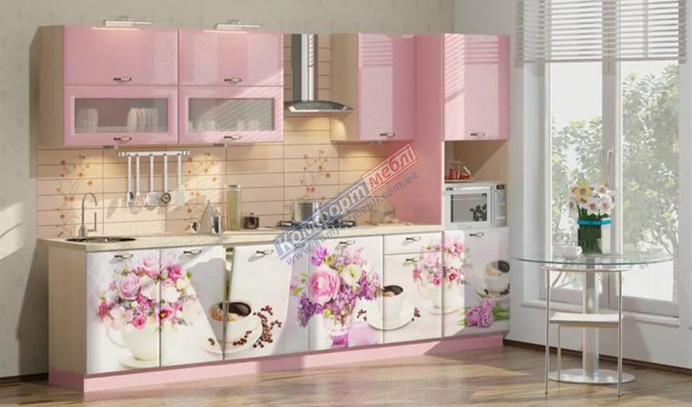 Модульная кухня Хай-тек с цветной печатью 3.3м Розовый