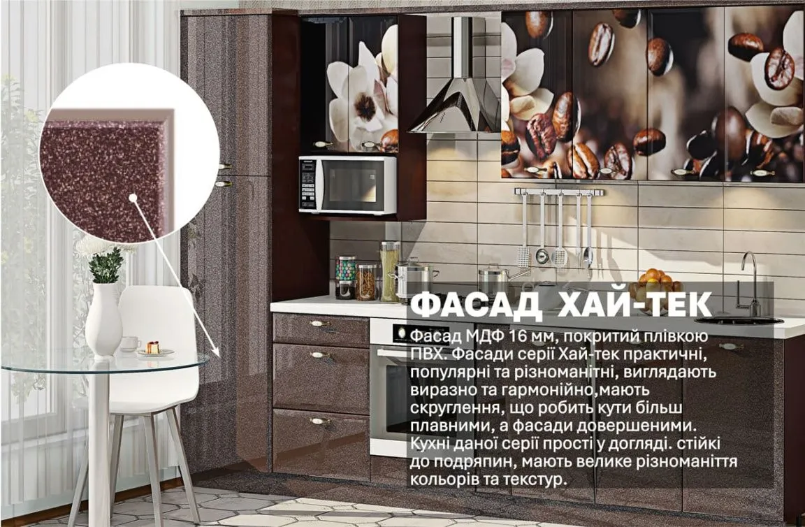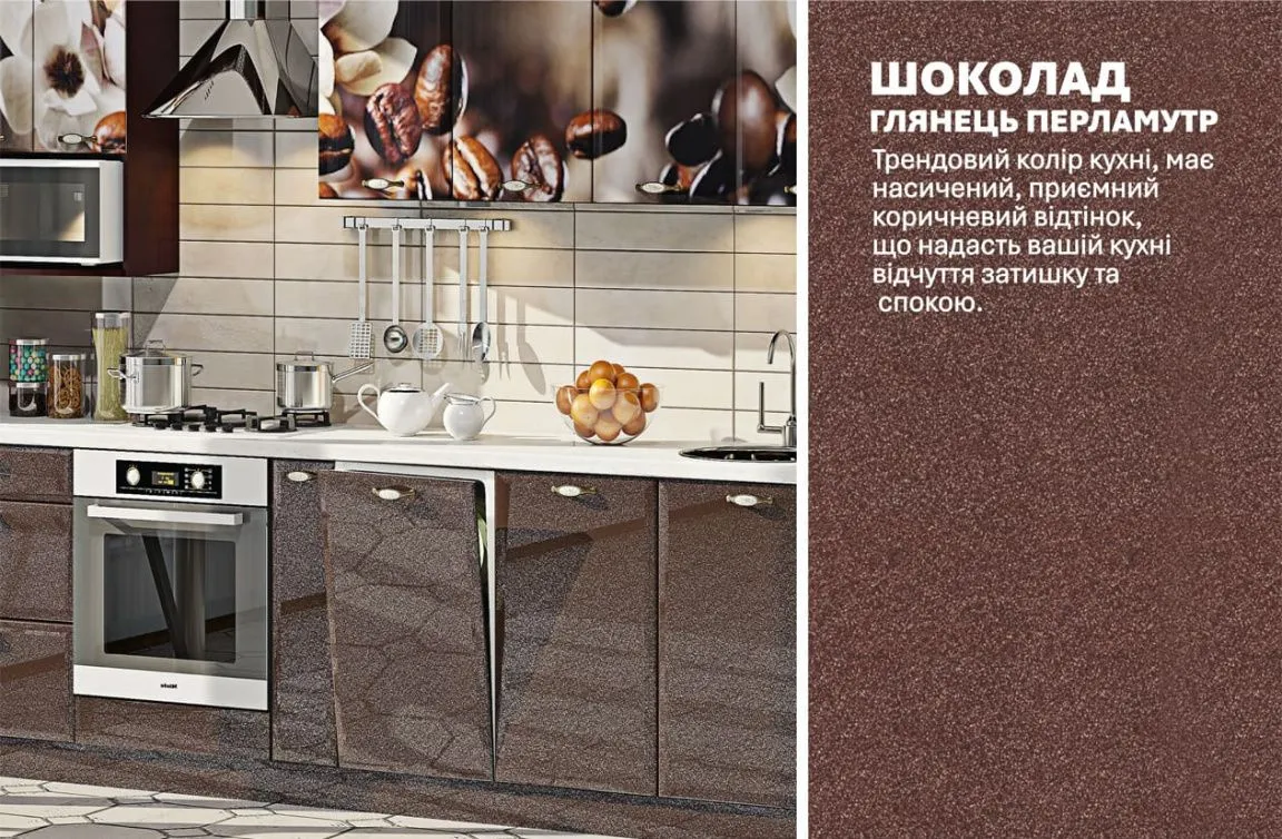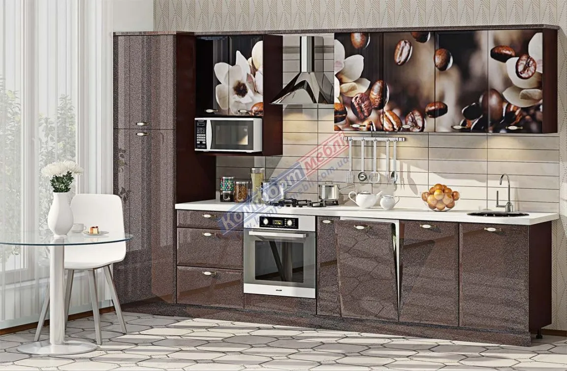 Модульная кухня Хай-тек с цветной печатью 3.4м Шоколад
