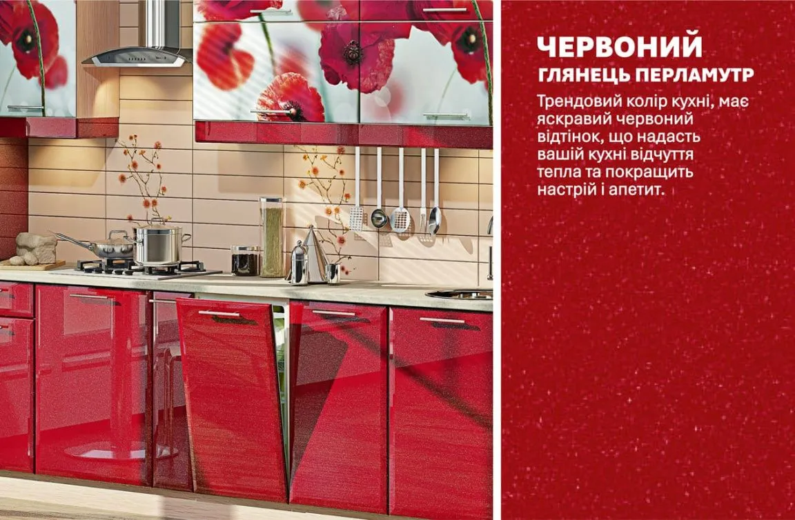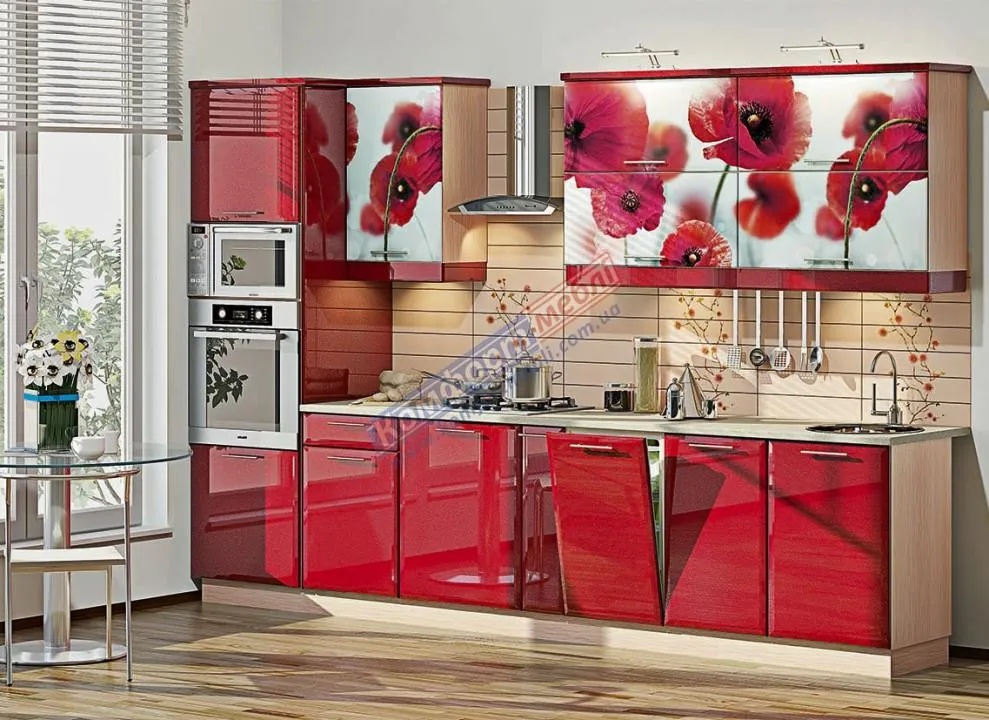 Модульная кухня Хай-тек с цветной печатью 3300мм Красный