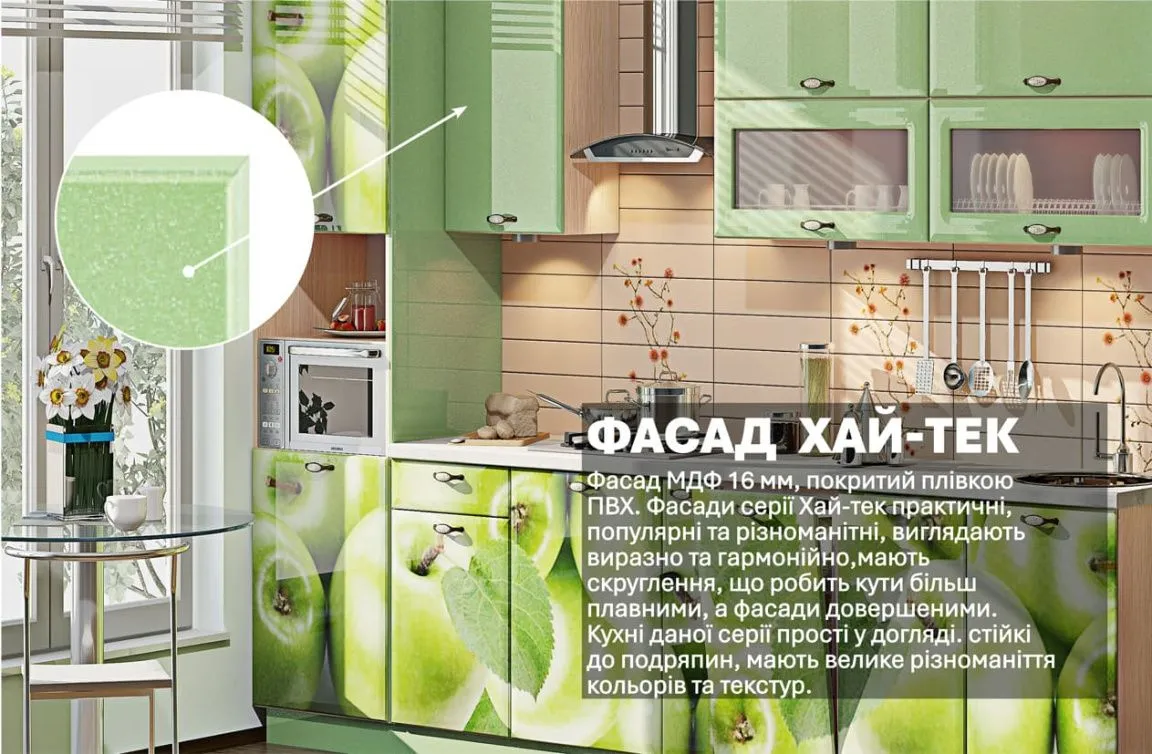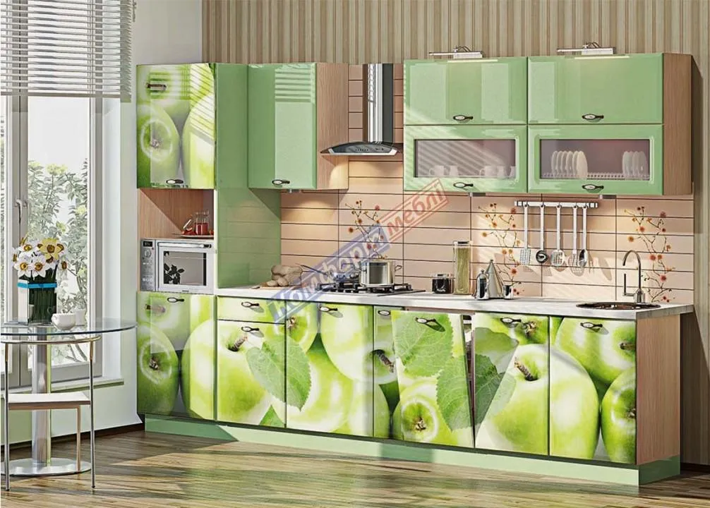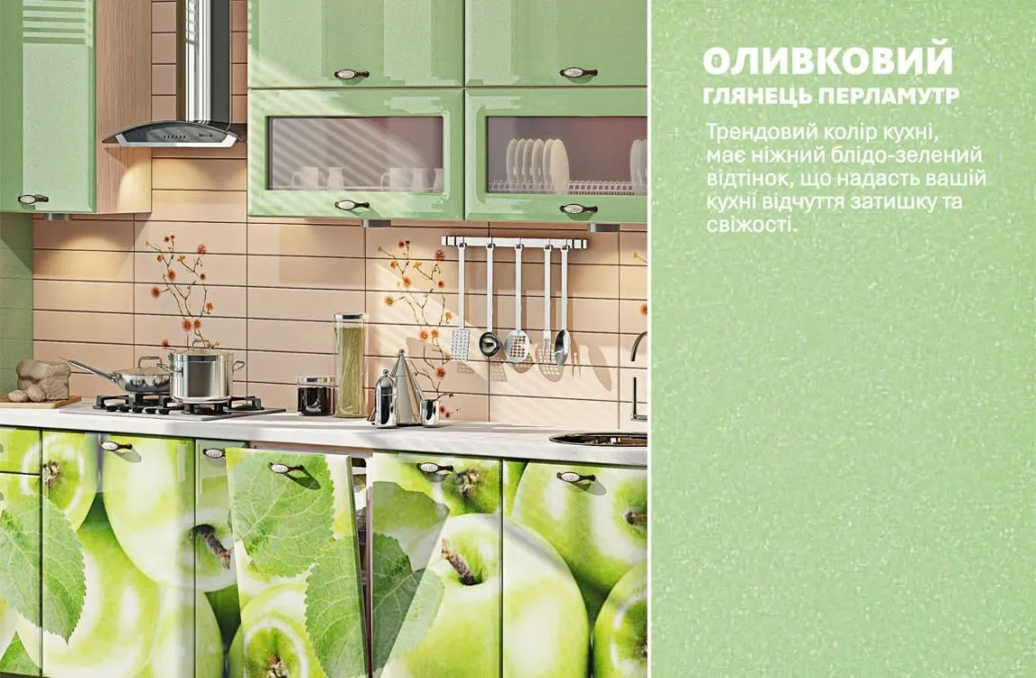 Модульная кухня Хай-тек с цветной печатью 330см Оливка