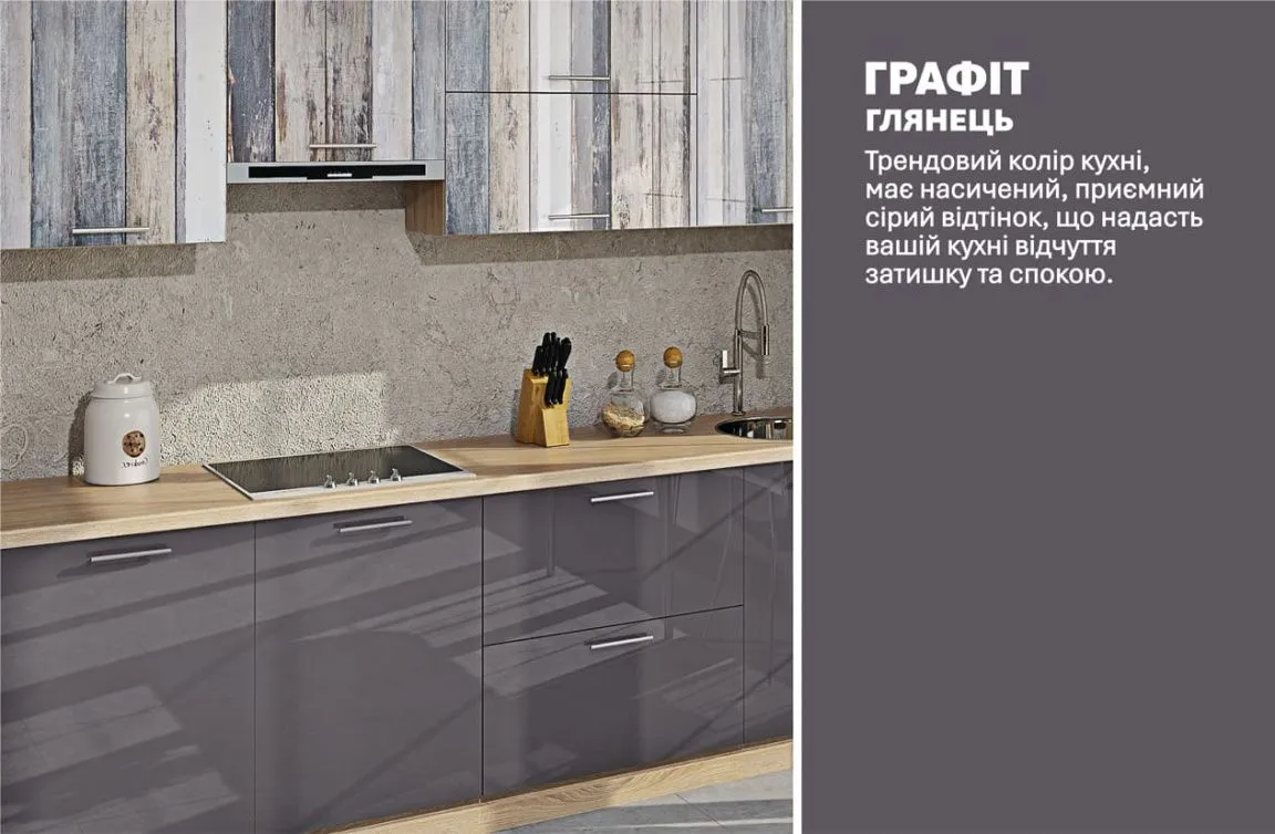 Модульная кухня Хай-тек с цветной печатью 3600мм Графит