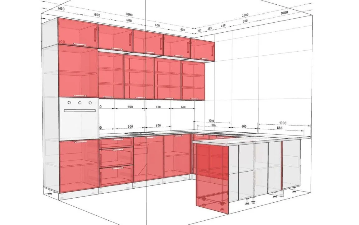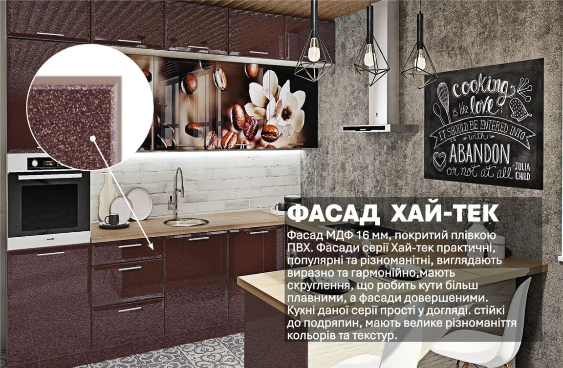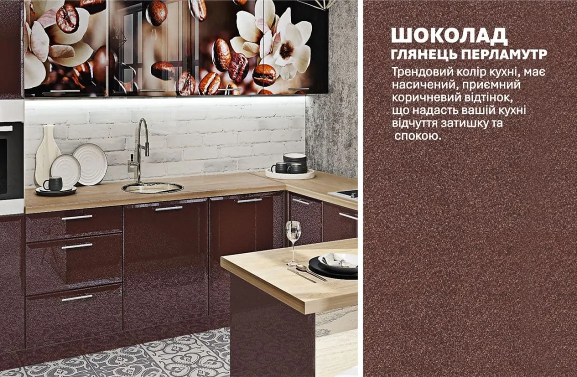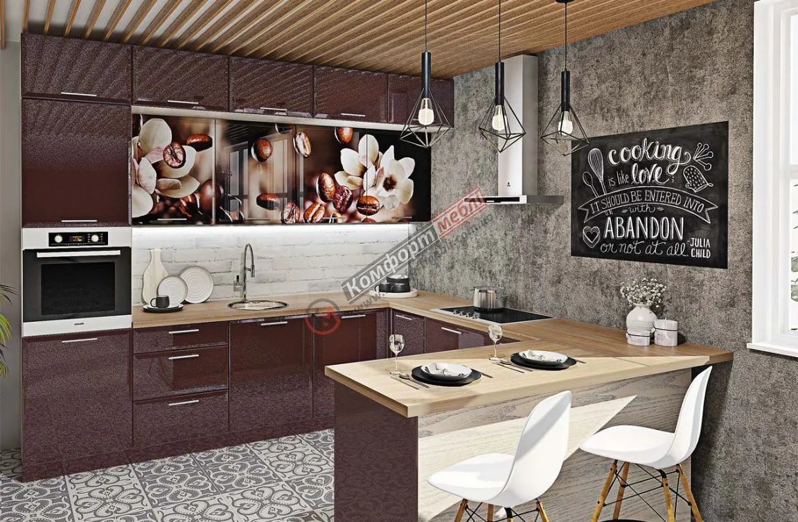 Модульная кухня Хай-тек с цветной печатью 3х2.6м П-образная Шоколад