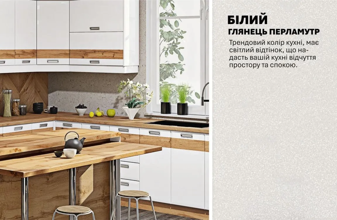 Модульная кухня Хай-тек с цветной печатью 4,05 х 3м Белый